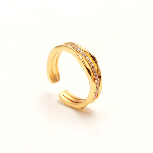 Gold Twisted Pave Band | Adjustable Gold-Tone Ring with Diagonal Twist Design & Clear Pave CZ Rows | Minimal Elegant Everyday Ring