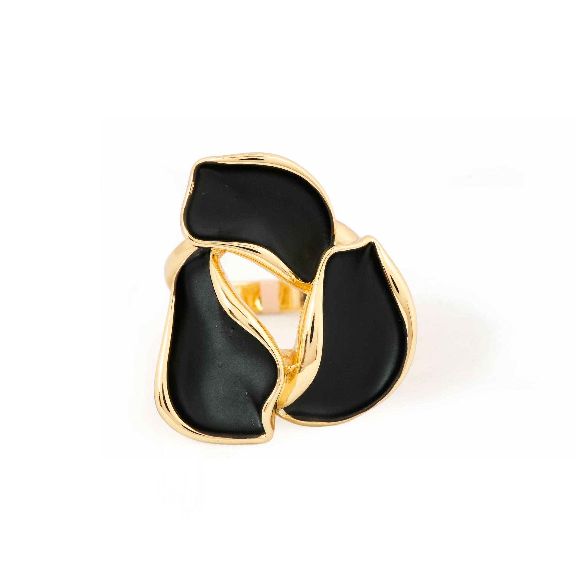 Gold Finish Black Enamel Designer Cocktail Ring for Women with Artistic Petal-Inspired Design, Bold Statement Look and Contemporary Fashion Jewelry | Perfect for Party, Wedding and Evening Glamour