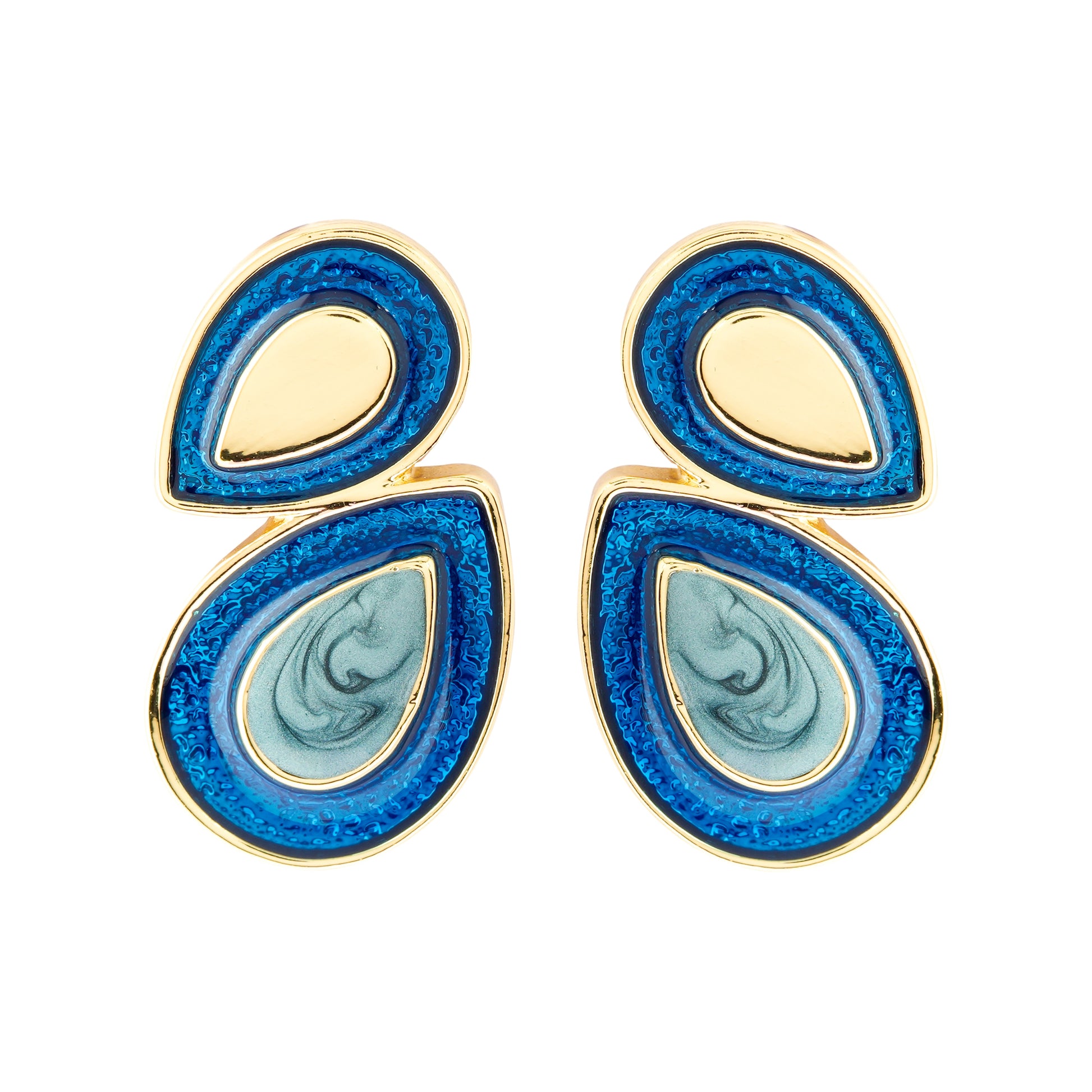 Elegant Dual-Tone Blue Enamel and Gold-Plated Teardrop Earrings with Artistic Marble Finish for Festive and Modern Styling