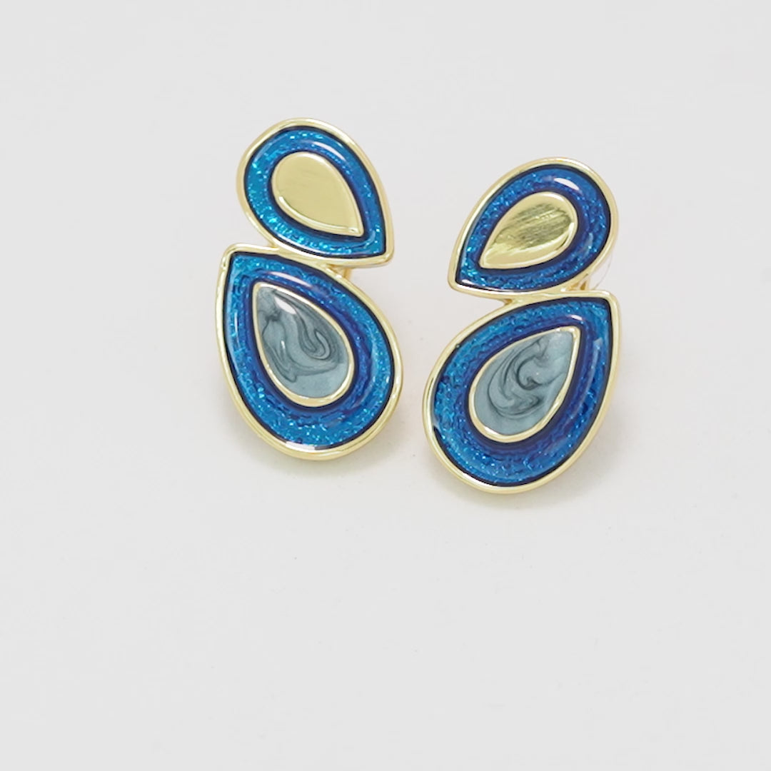 These earrings combine traditional artistry with modern sophistication, featuring a dual-tone design in deep ocean blue and gold. The teardrop silhouette is enhanced with a marble-inspired enamel finish, giving the piece a unique depth and texture that catches the light beautifully. Whether you’re dressing up for a wedding celebration, pairing them with evening wear for a cocktail event, or adding a bold accent to casual outfits, these earrings promise timeless elegance. The lightweight construction ensures comfort for all-day wear, while the versatile design makes them a staple accessory for every jewelry collection.