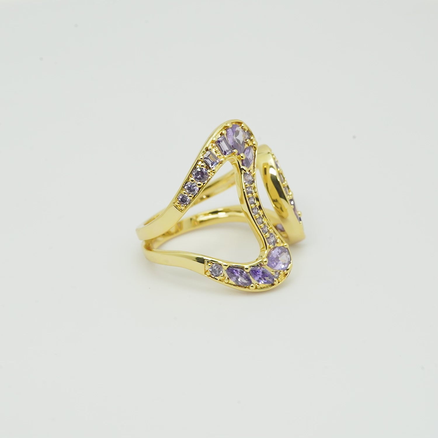 Open Band Gold Finish Ring for Women with Purple Crystal Detailing | Stylish Statement Fashion Jewelry for Party, Wedding, Daily Wear