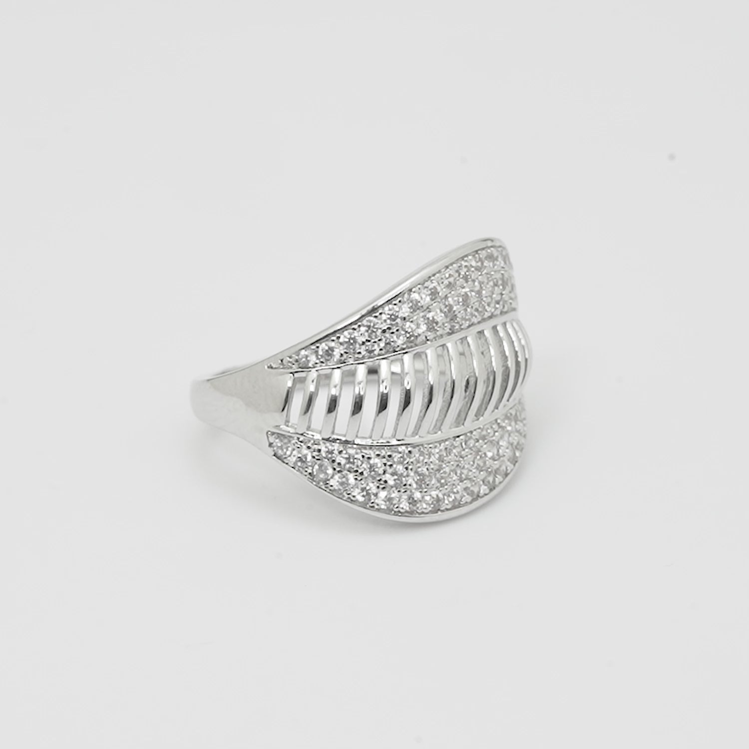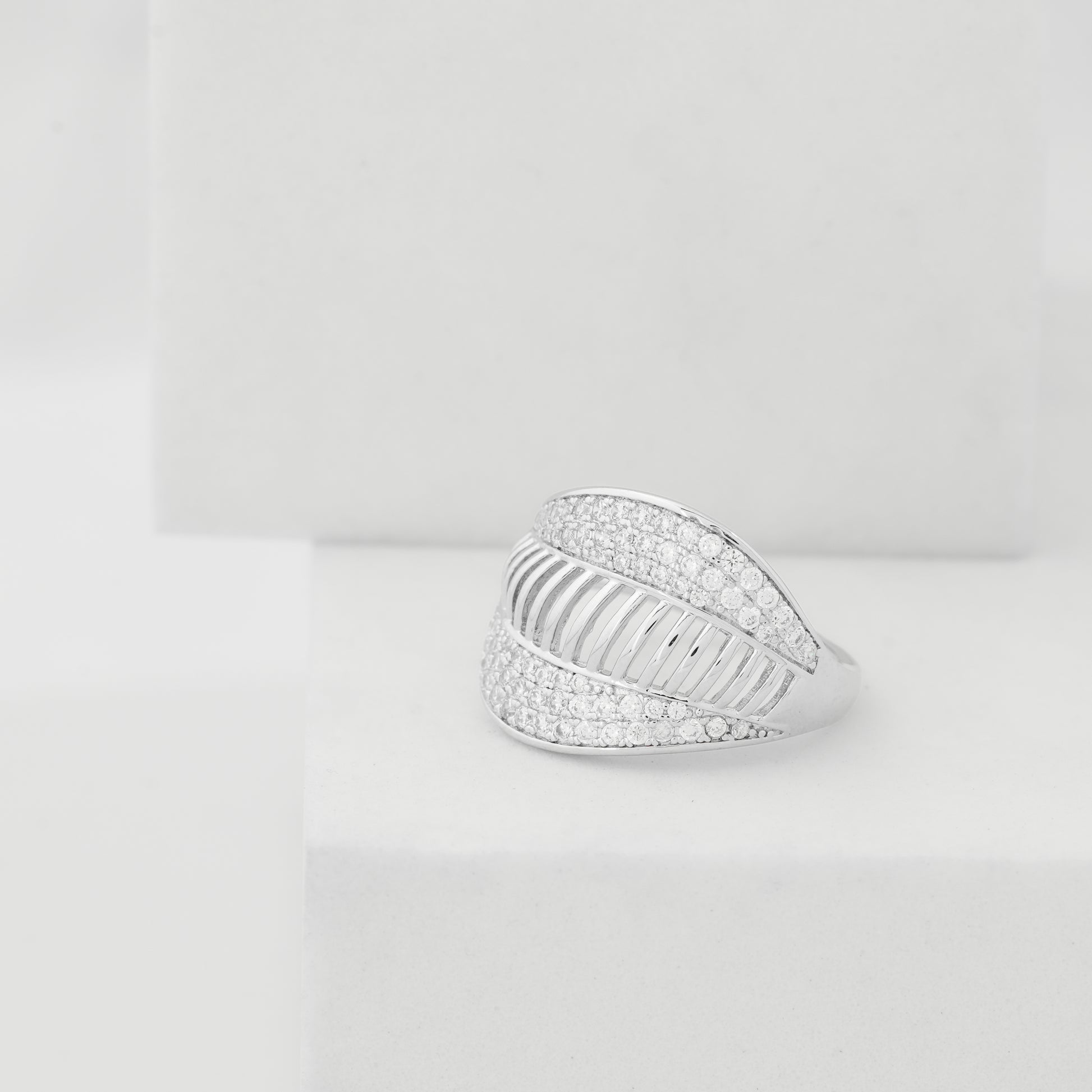 Aura Crystal Feather Silver Plated Designer Ring for Women with Modern Layered Pattern and Diamond Look Crystal Studded Design | Trendy Daily Wear, Party Wear and Wedding Jewelry