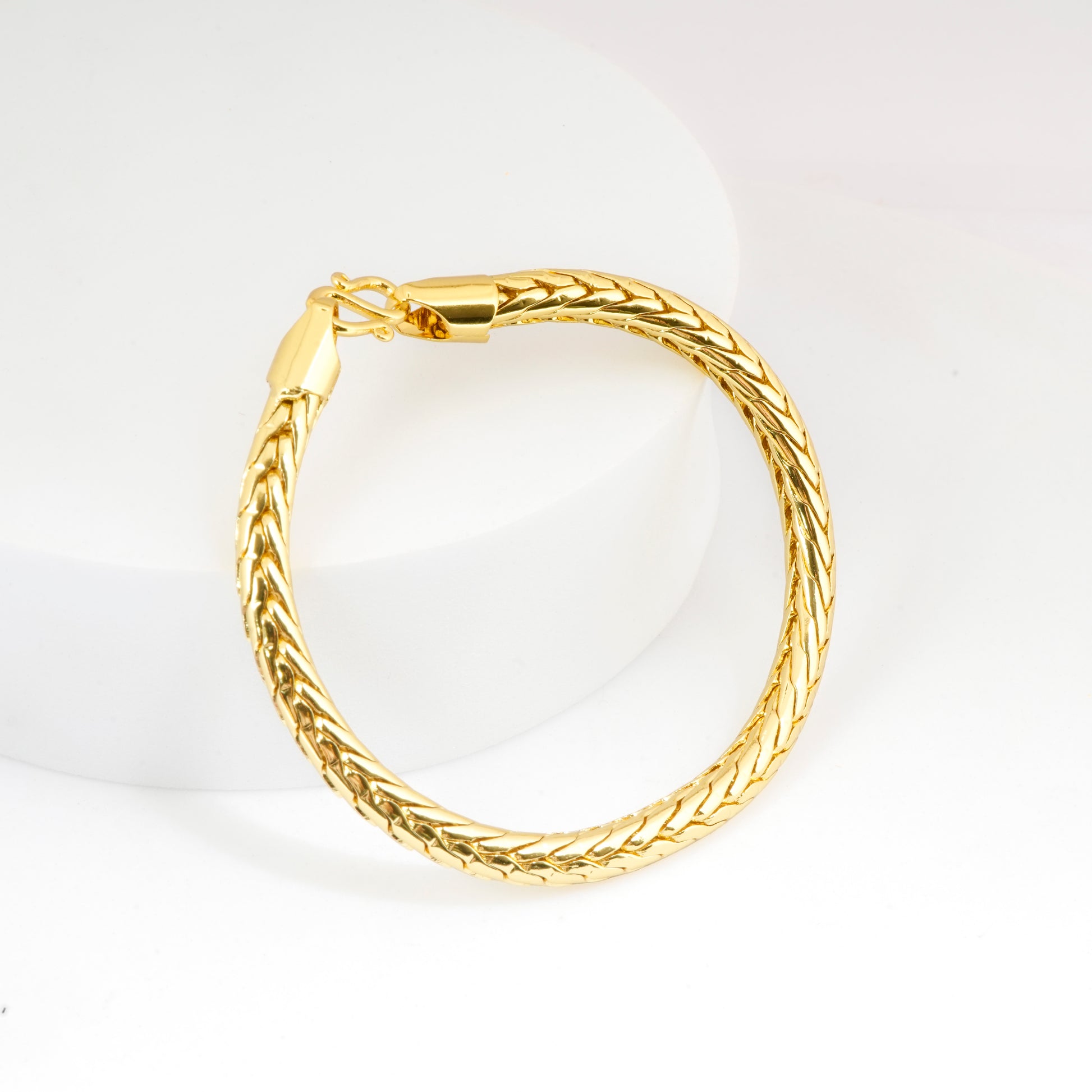 Celebrate the art of timeless craftsmanship with this gold woven chain bracelet, featuring a bold braided design that radiates strength and elegance. The intricate weave gives it a luxurious texture, while the polished finish ensures versatility—perfect for daily wear, office ensembles, or festive occasions. Its secure clasp promises comfort and durability, making it a jewelry box essential.
