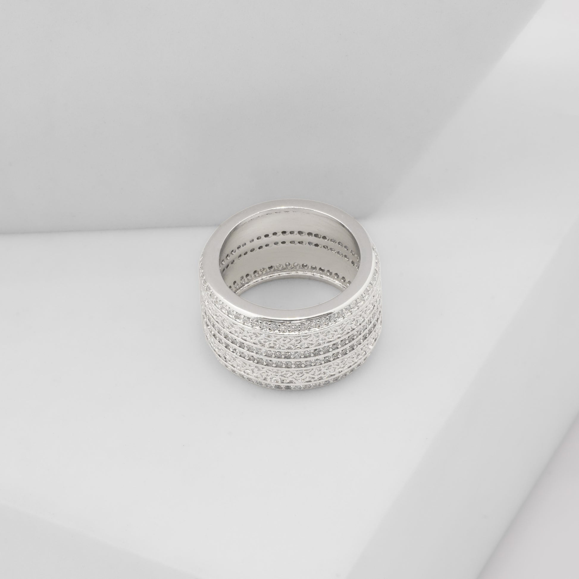 This broad band silver finish ring for women is a timeless piece of fashion jewelry designed to add sparkle and elegance to your look. The ring features a wide band style completely covered with shimmering crystals, giving it a luxurious and glamorous appearance. Its bold yet minimal design makes it a perfect statement ring for any occasion.