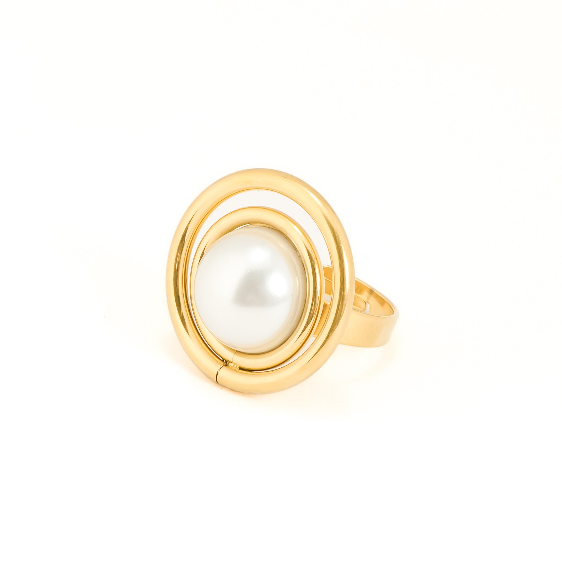 ● Classic round pearl centerpiece with gold plated circular design