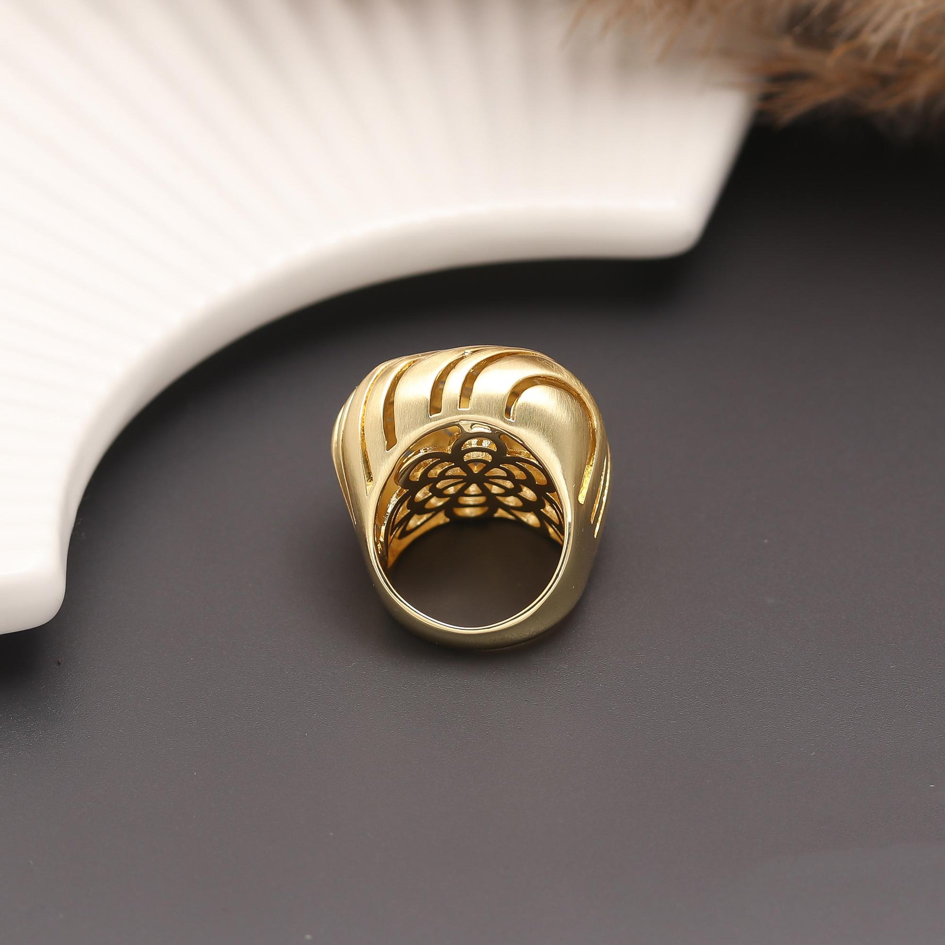 Sculpted Dome Ring with Satin Gold Finish and Textured Wave Detailing | Bold Statement Jewelry