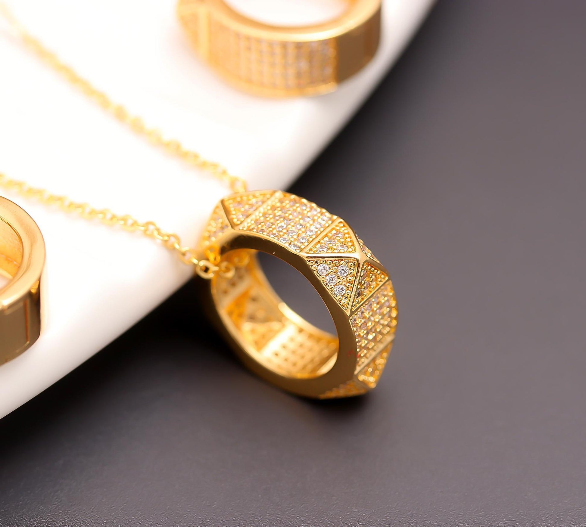 Luxurious Gold-Plated Geometric Pendant Necklace and Matching Earrings Set with Diamond-Inspired Detailing | Modern Elegance for Every Occasion