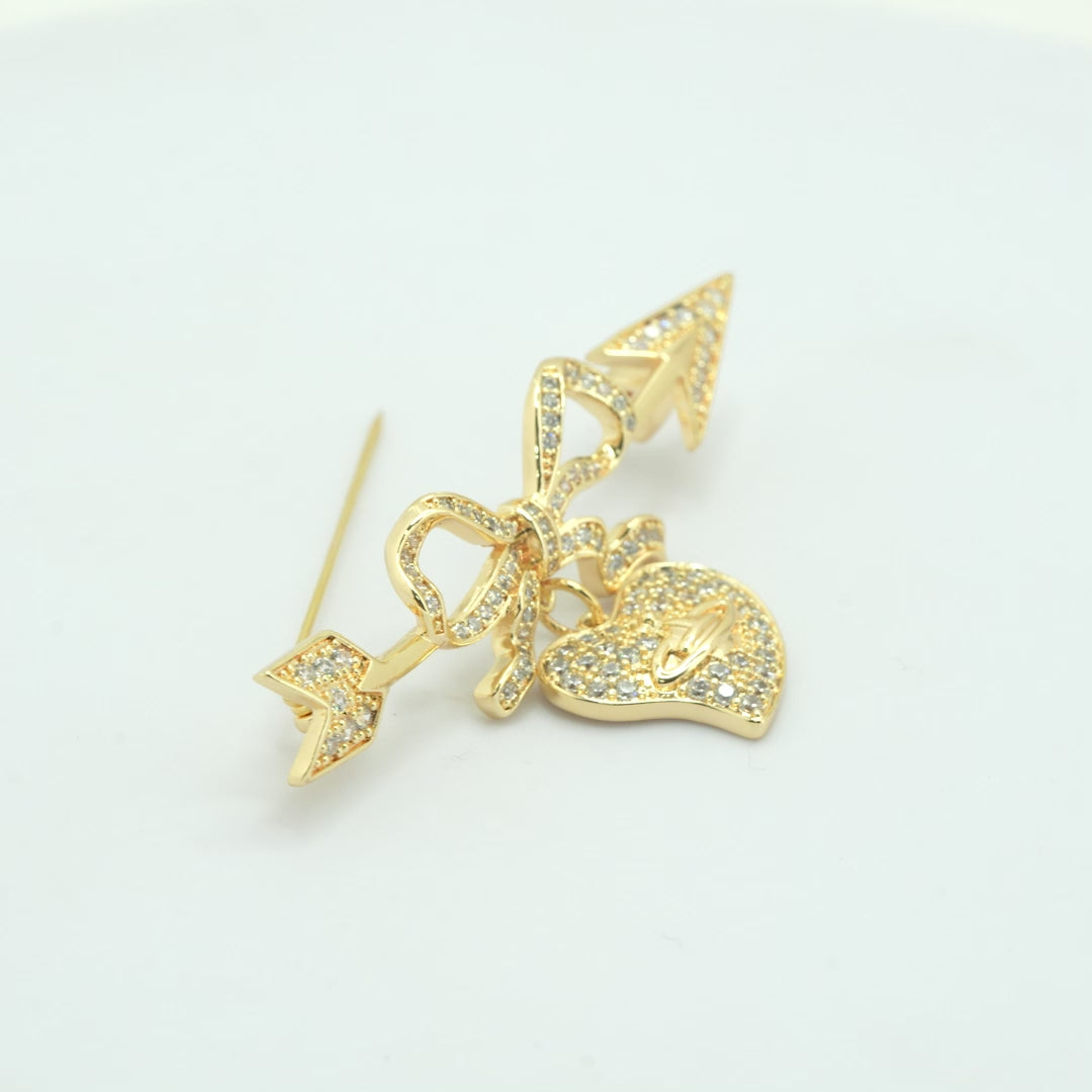 - Gold-tone brooch designed as Cupid’s arrow with a bow motif