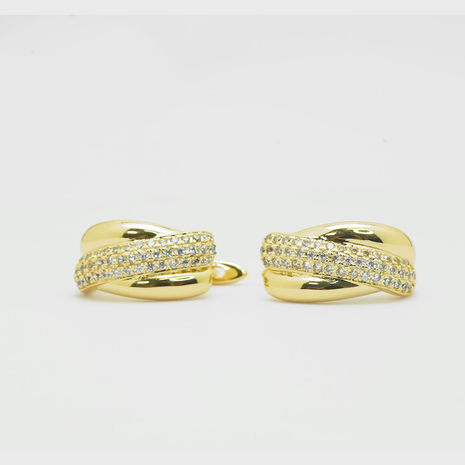 Contemporary Gold-Plated Hoop Earrings with Diamond-Like Pavé Crossover Detailing for Sophisticated Glamour