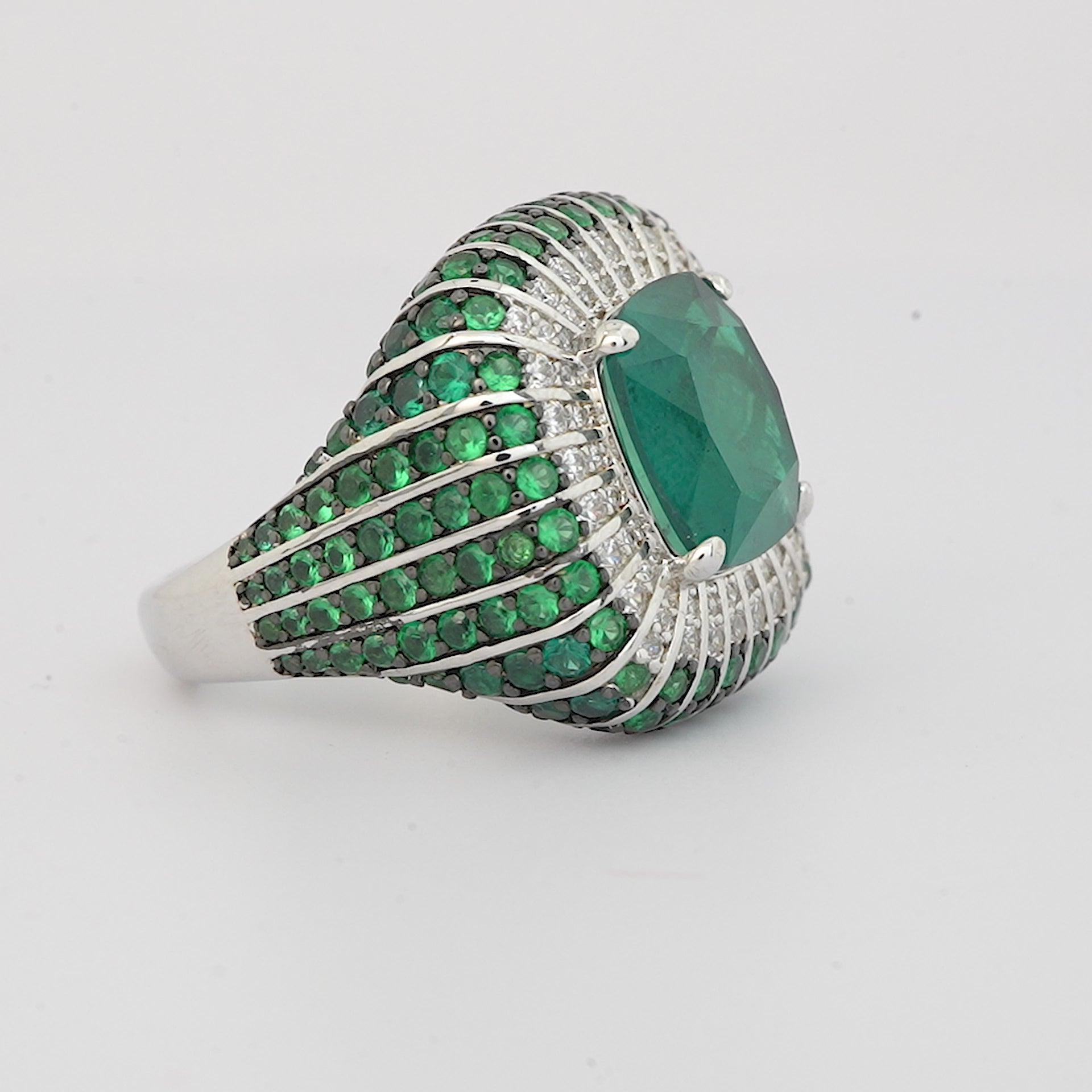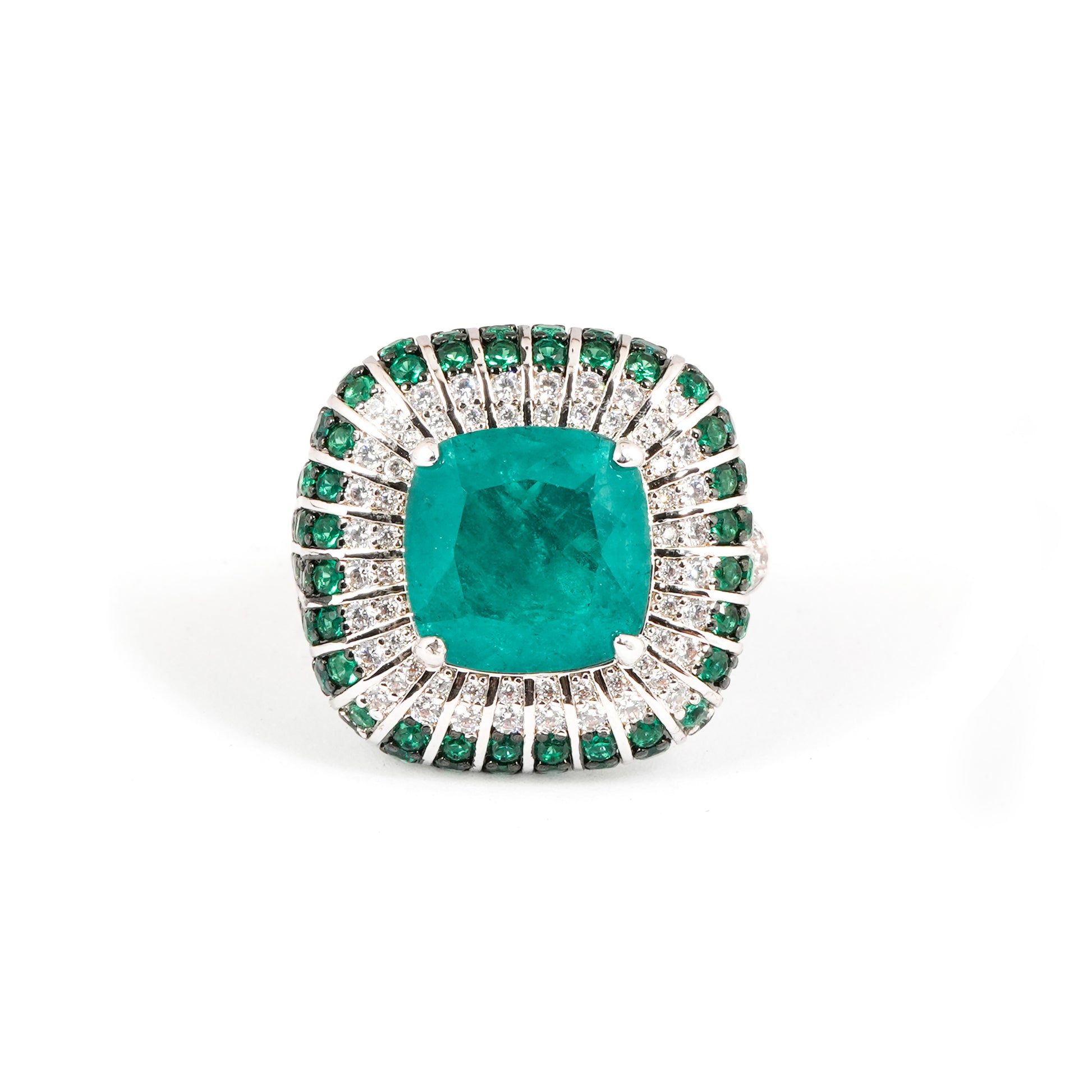 Silver Plated Green Stone Ring for Women with Emerald Square Design and Sparkling White Diamond Look Border – Stylish Party Wear and Wedding Jewelry