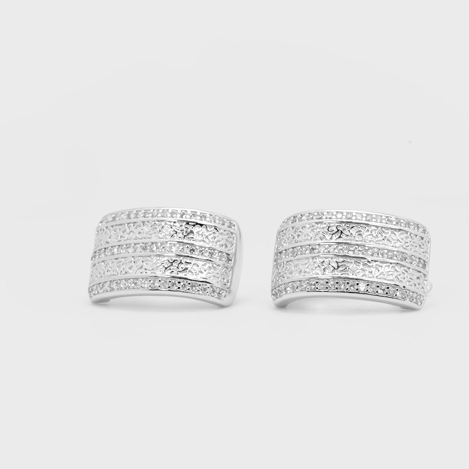 Sleek, structured, and effortlessly refined, these rectangular silver-plated hoop earrings redefine contemporary sophistication. The unique rectangular silhouette is adorned with meticulously set diamond-like stones arranged in layered rows, creating depth and dimension that shimmer beautifully with every movement. Their modern geometric structure blends bold design with timeless elegance, making them an ideal accessory for women who appreciate versatile yet standout jewelry. Perfect for pairing with tailored office wear, cocktail attire, or festive ensembles, these earrings offer both comfort and brilliance in equal measure.