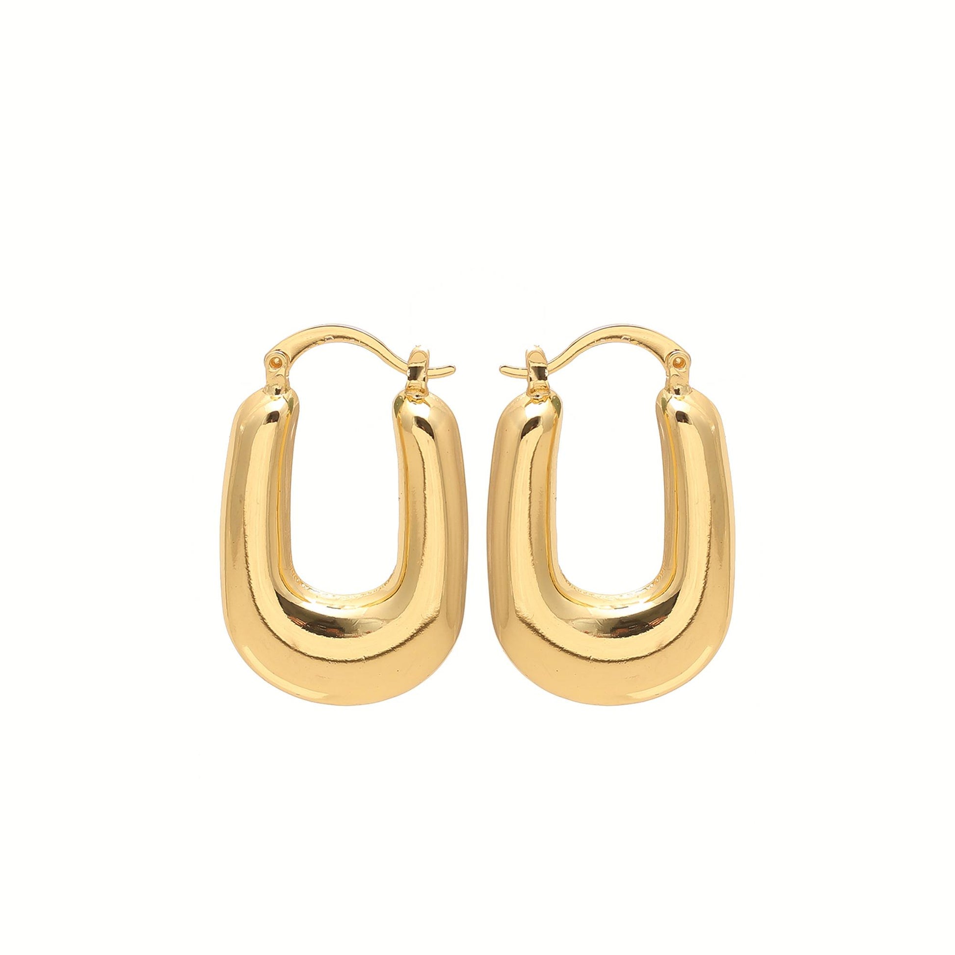Gold-Plated U-Shaped Hoop Earrings with Bold Contemporary Silhouette and High-Shine Finish for Modern Statement Style