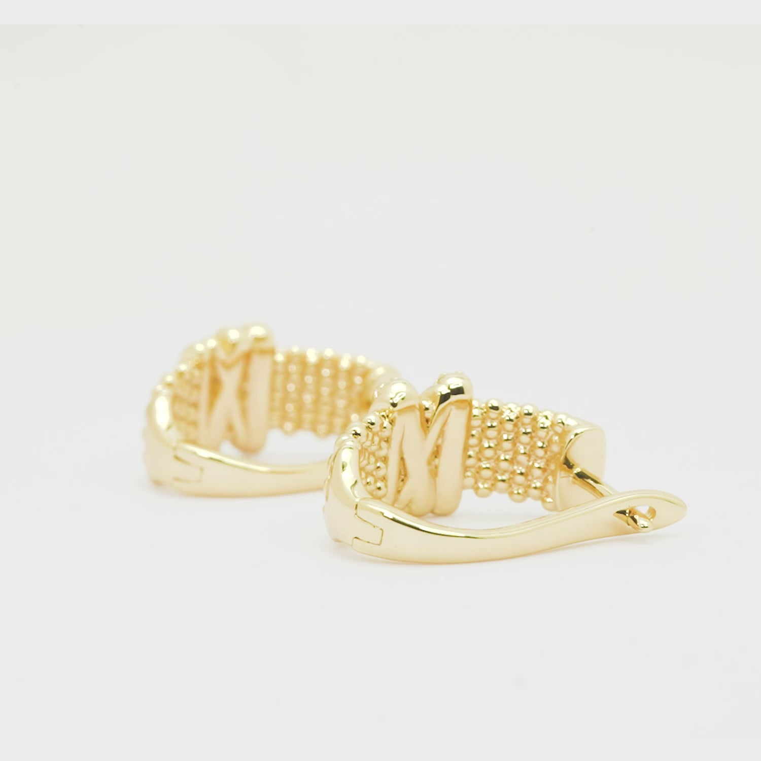 Gold-plated hoops with textured beaded surface