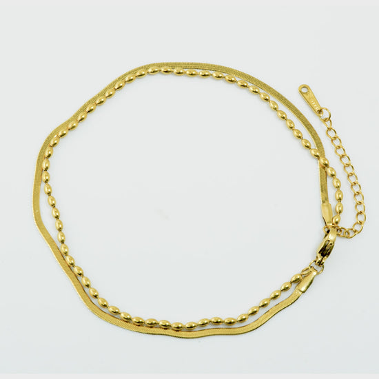 Gilded Two-Tone Layer Anklet for Women – Modern Gold-Tone Snake Chain & Beaded Accent Chain | Sleek Layered Anklet for Minimal & Summer Styling