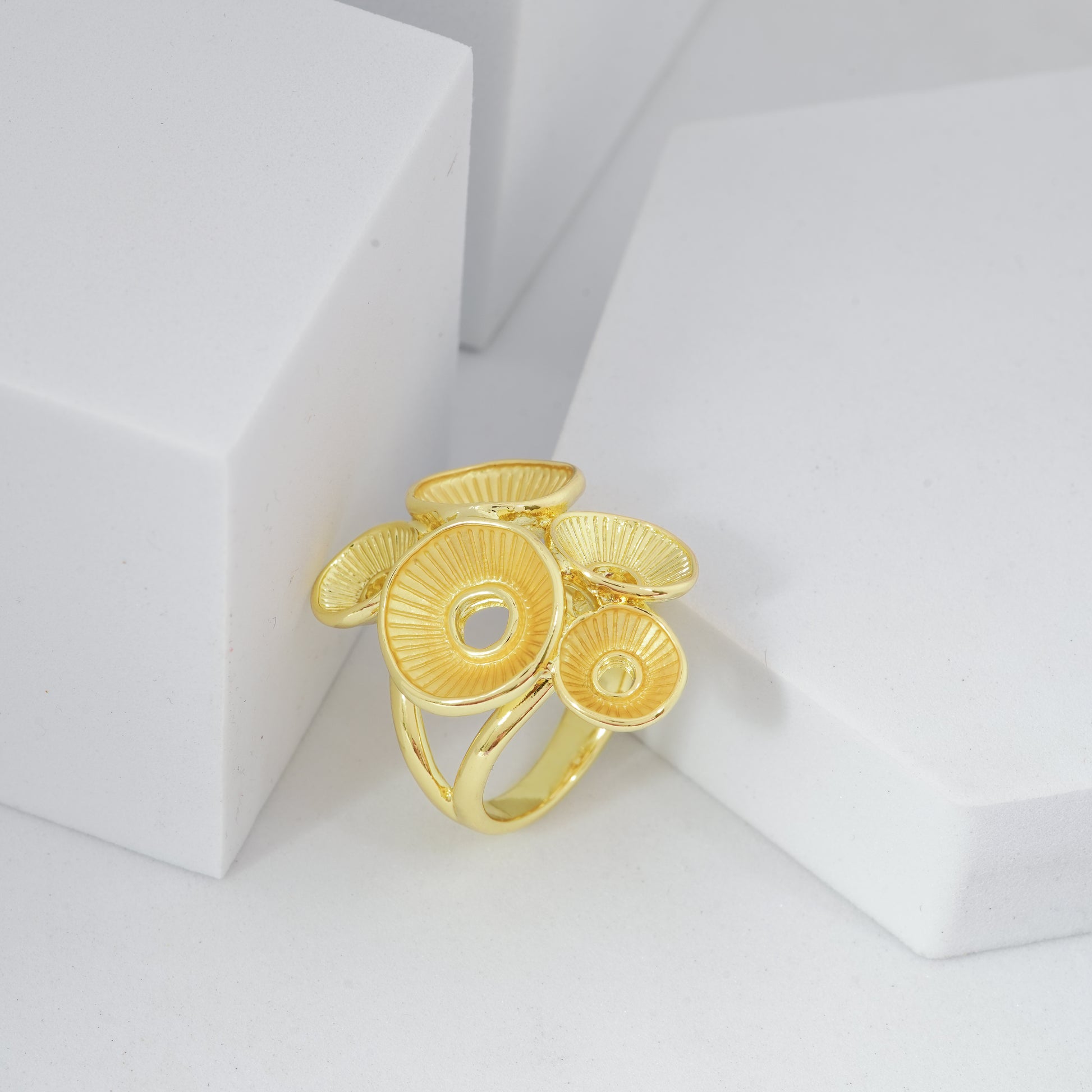 Gold Finish Multi-Circle Abstract Cocktail Ring with Textured Detailing | Contemporary Statement Jewelry for Parties and Festive Occasions