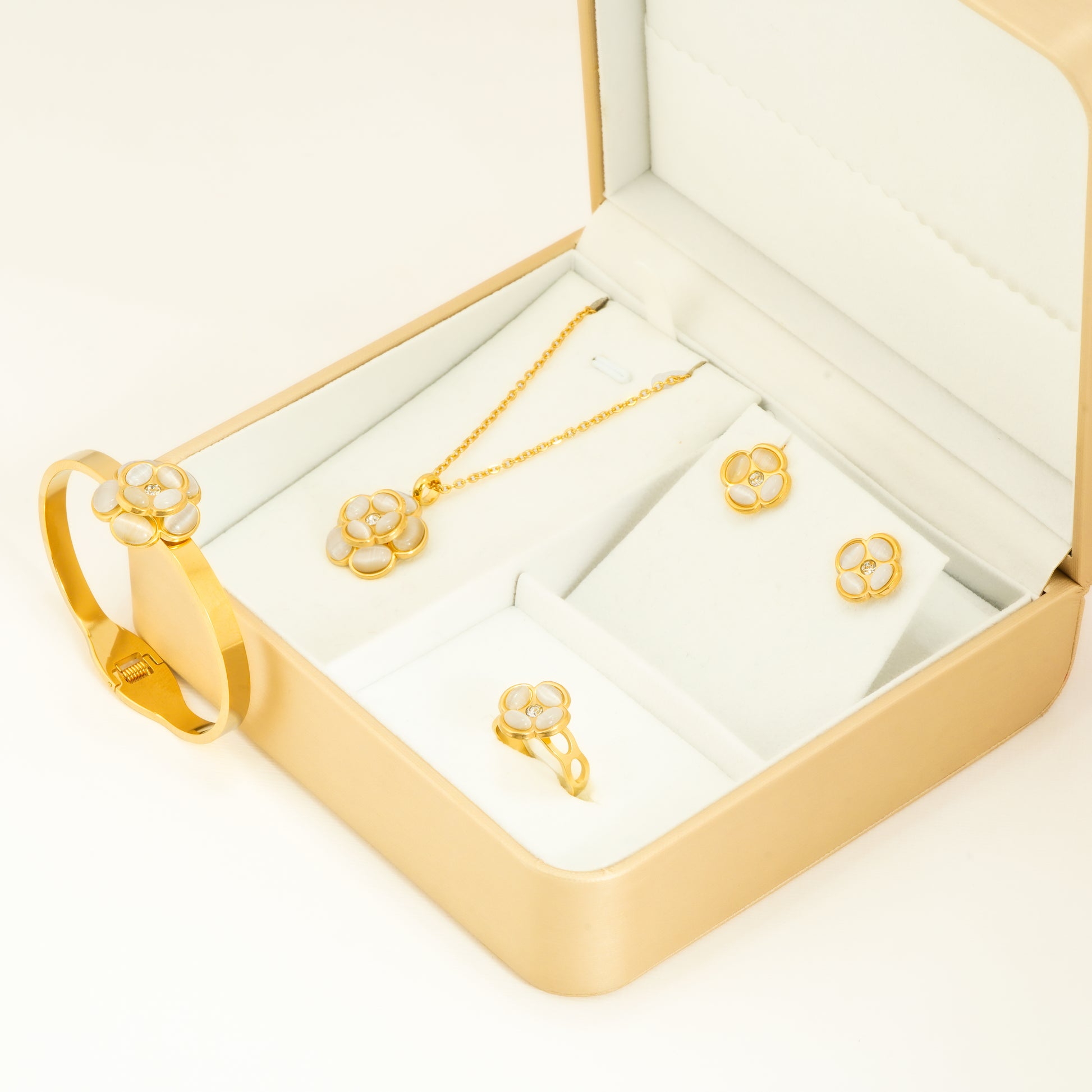 ● Complete jewelry set: bracelet, necklace, earrings, and ring in one box