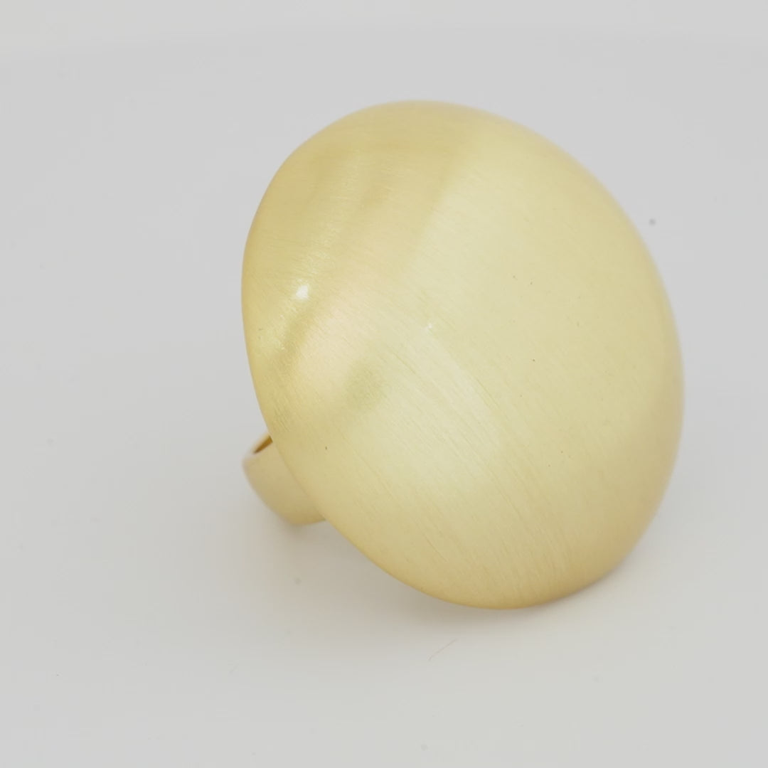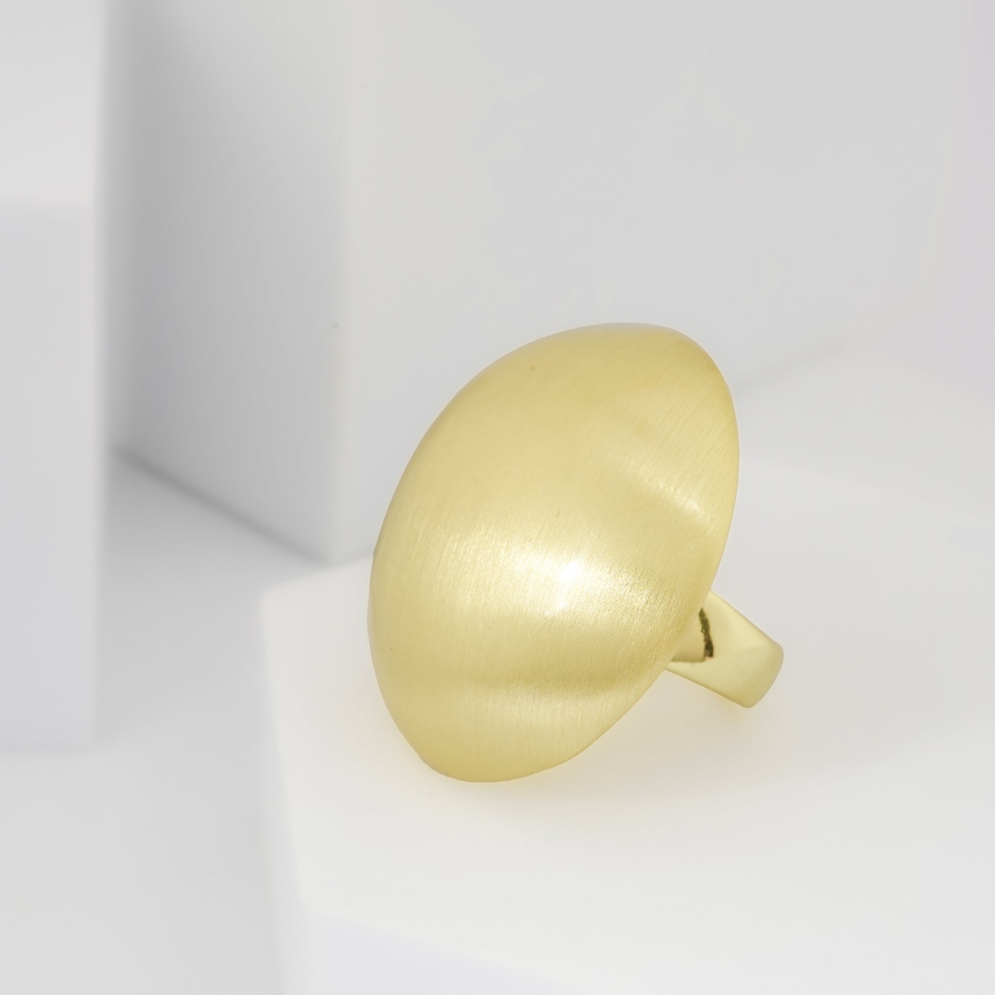Make a striking impression with this gold finish oversized dome cocktail ring, a bold yet minimalistic design crafted to stand out. The smooth, brushed dome surface reflects elegance and confidence, making it a go-to accessory for women who love modern statement jewelry.
