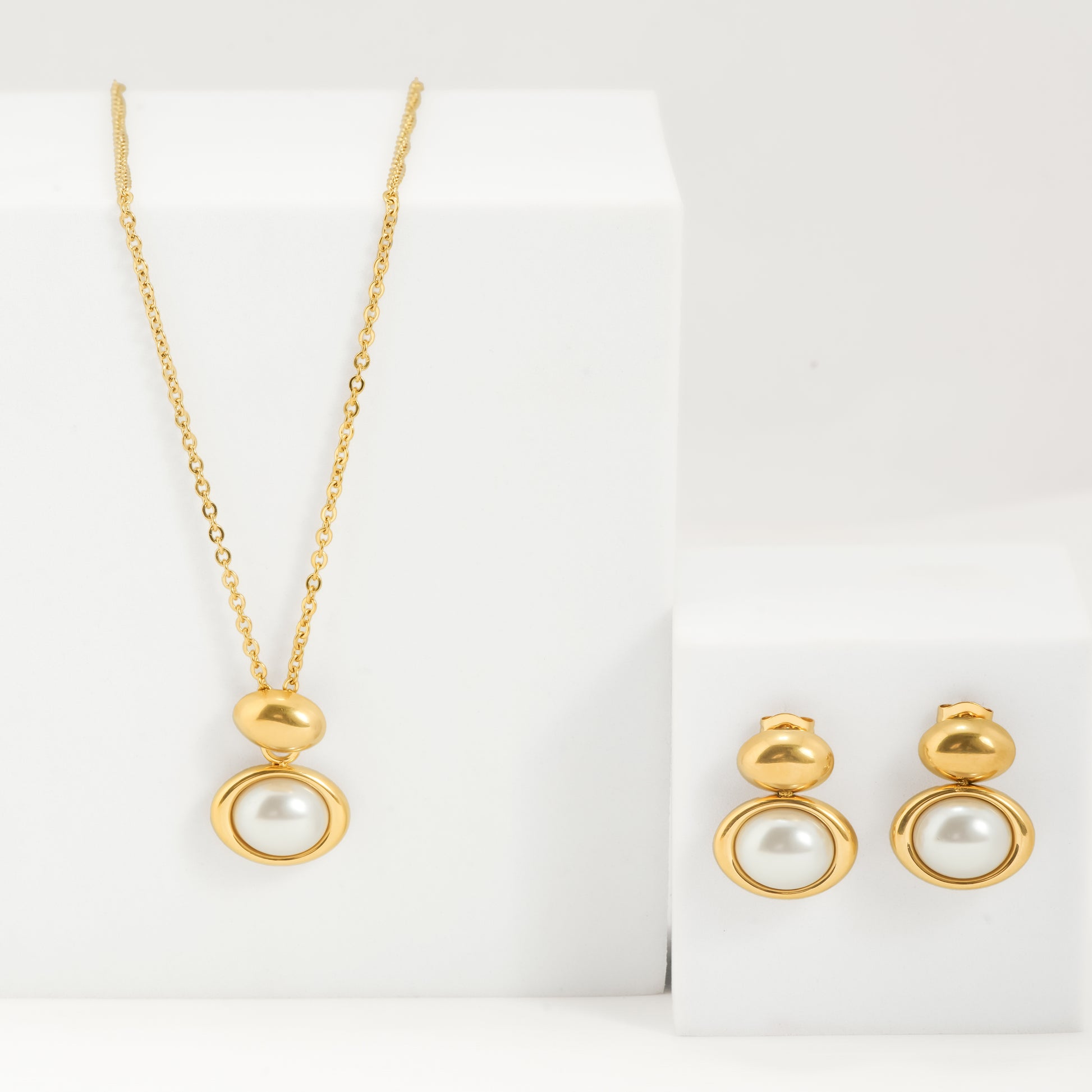 Add timeless elegance to your collection with this Gold Plated Pearl Jewelry Set, featuring a graceful white pearl centerpiece in every piece. This complete set includes a bracelet, pendant necklace, matching earrings, and a ring — making it the perfect choice for both everyday sophistication and special occasions.