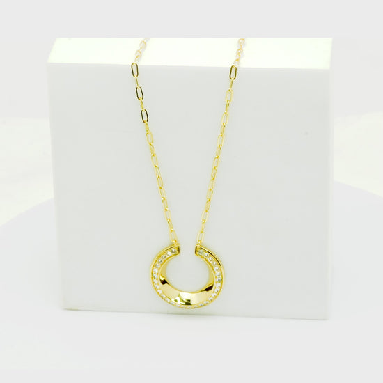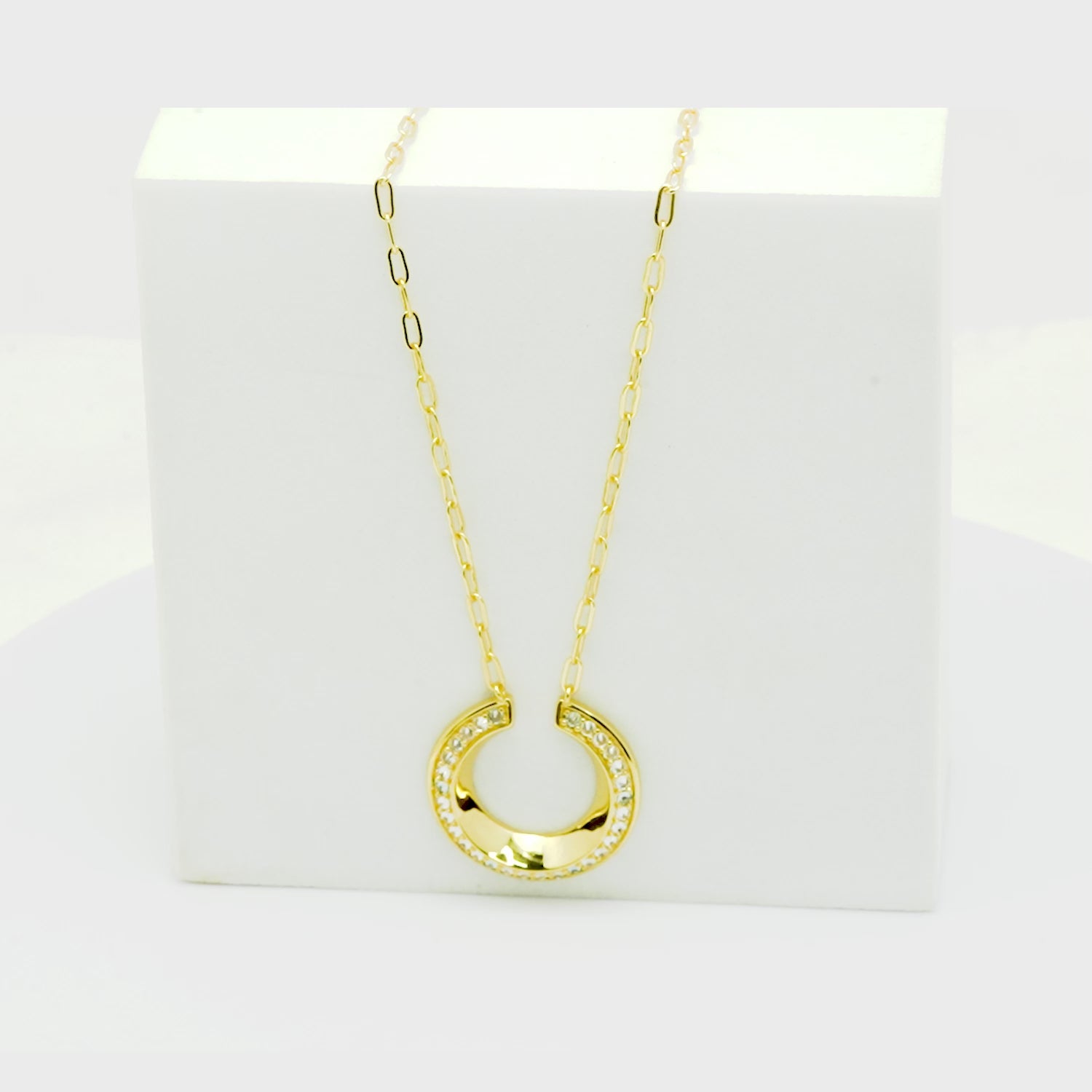 ● Elegant crescent-shaped half moon pendant with crystal detailing
