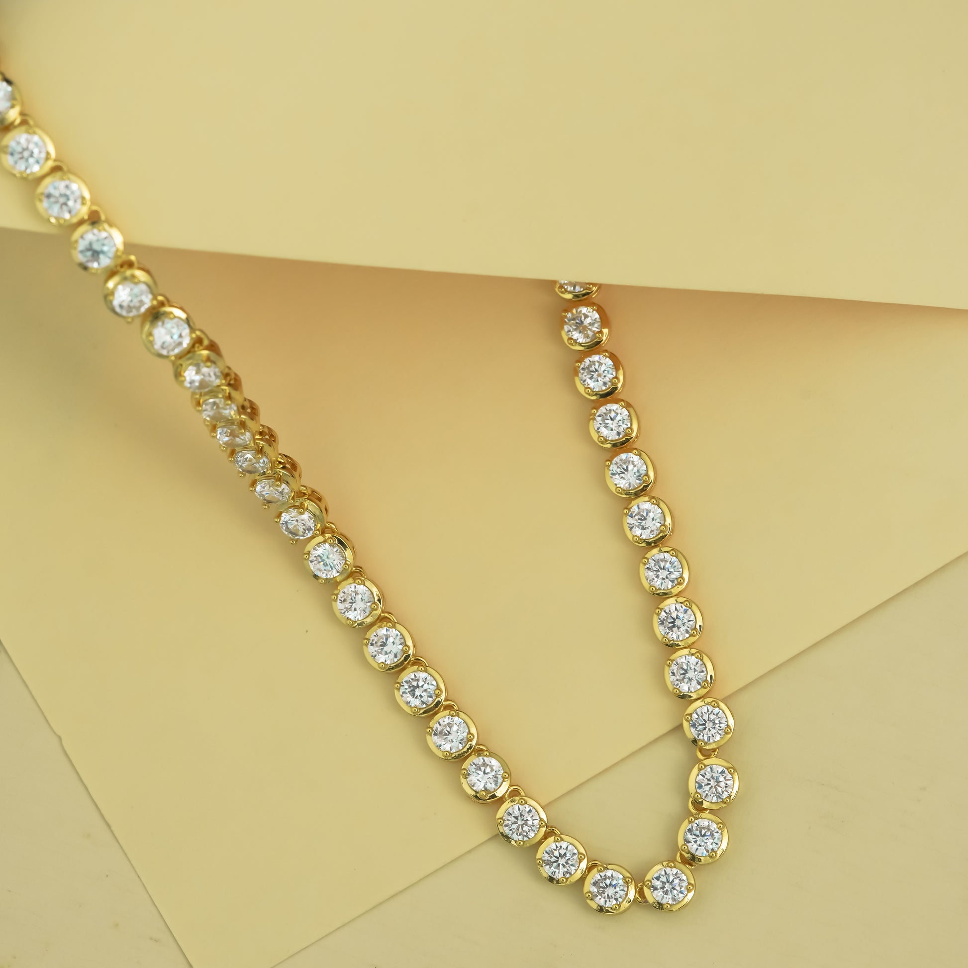 Golden Hour Tennis Necklace | Gold-Tone Round CZ Tennis Chain with Brilliant Shine | Elegant Statement Necklace for Evening, Festive and Bridal Styling