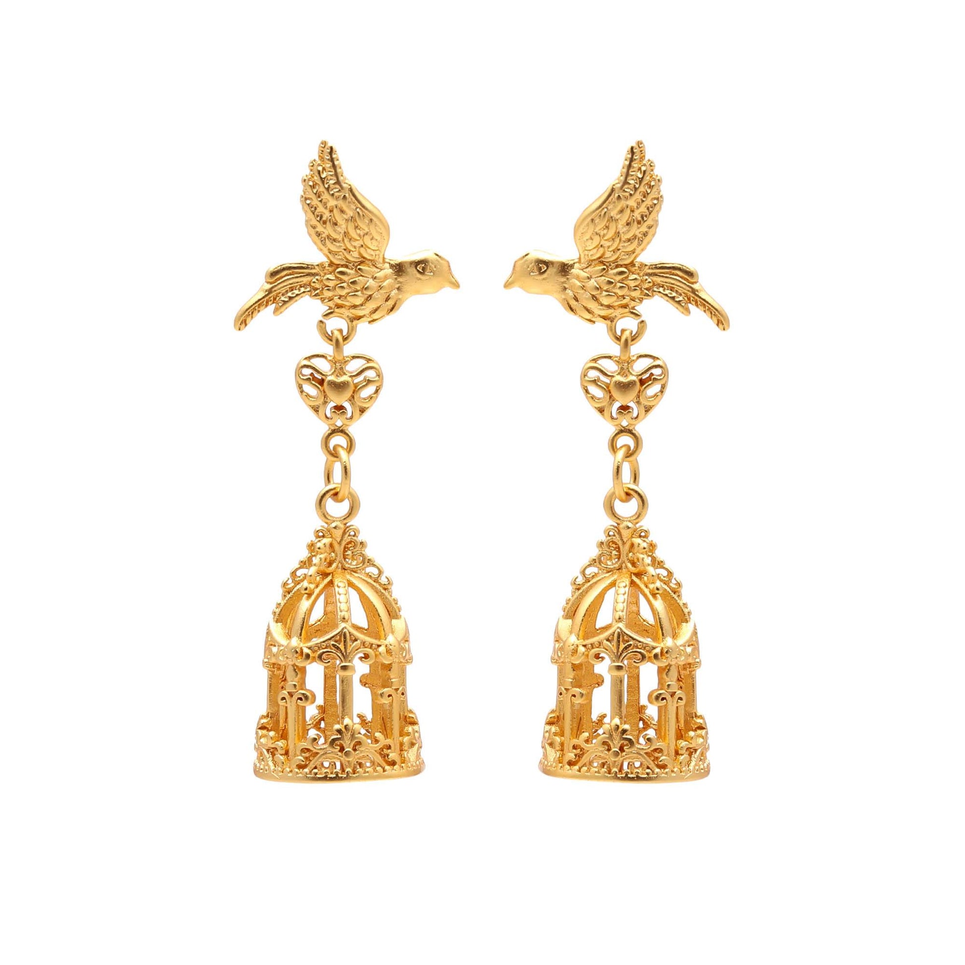 Golden Nightingale & Cage Earrings