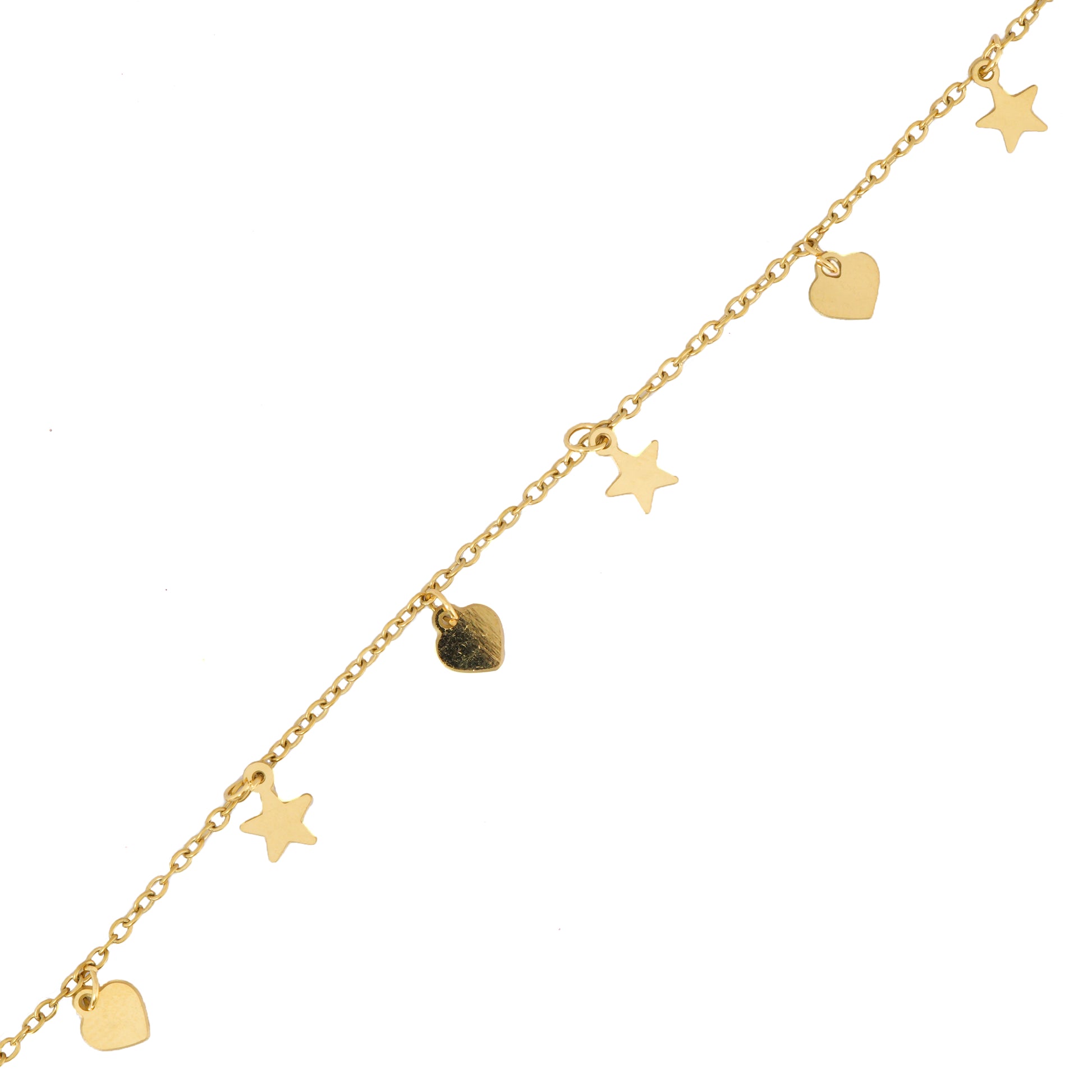 Star & Heart Charm Gold-Tone Anklet for Women – Dainty Chain Anklet with Alternating Mini Star and Heart Pendants | Everyday Wear, Cute & Trendy Jewellery