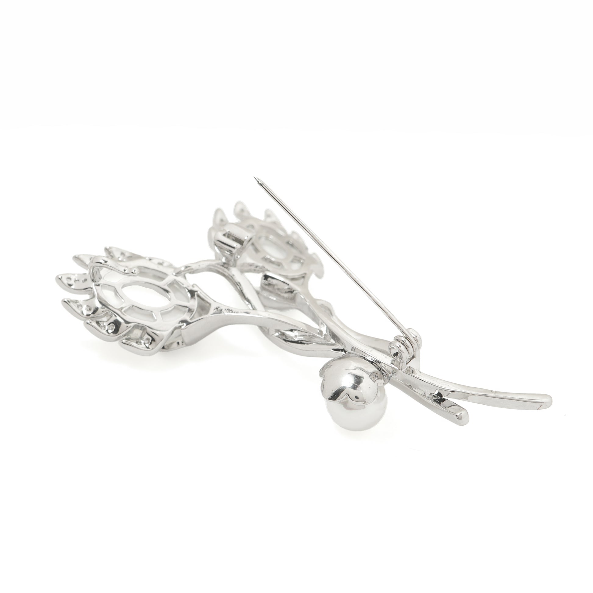 CATAGORY: BROOCH | Metal: BRASS | Plating; WHITE gold | Stones: CZ/PEARL| Color: SILVER