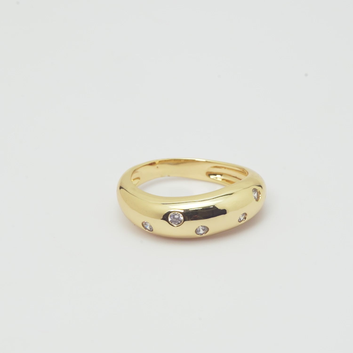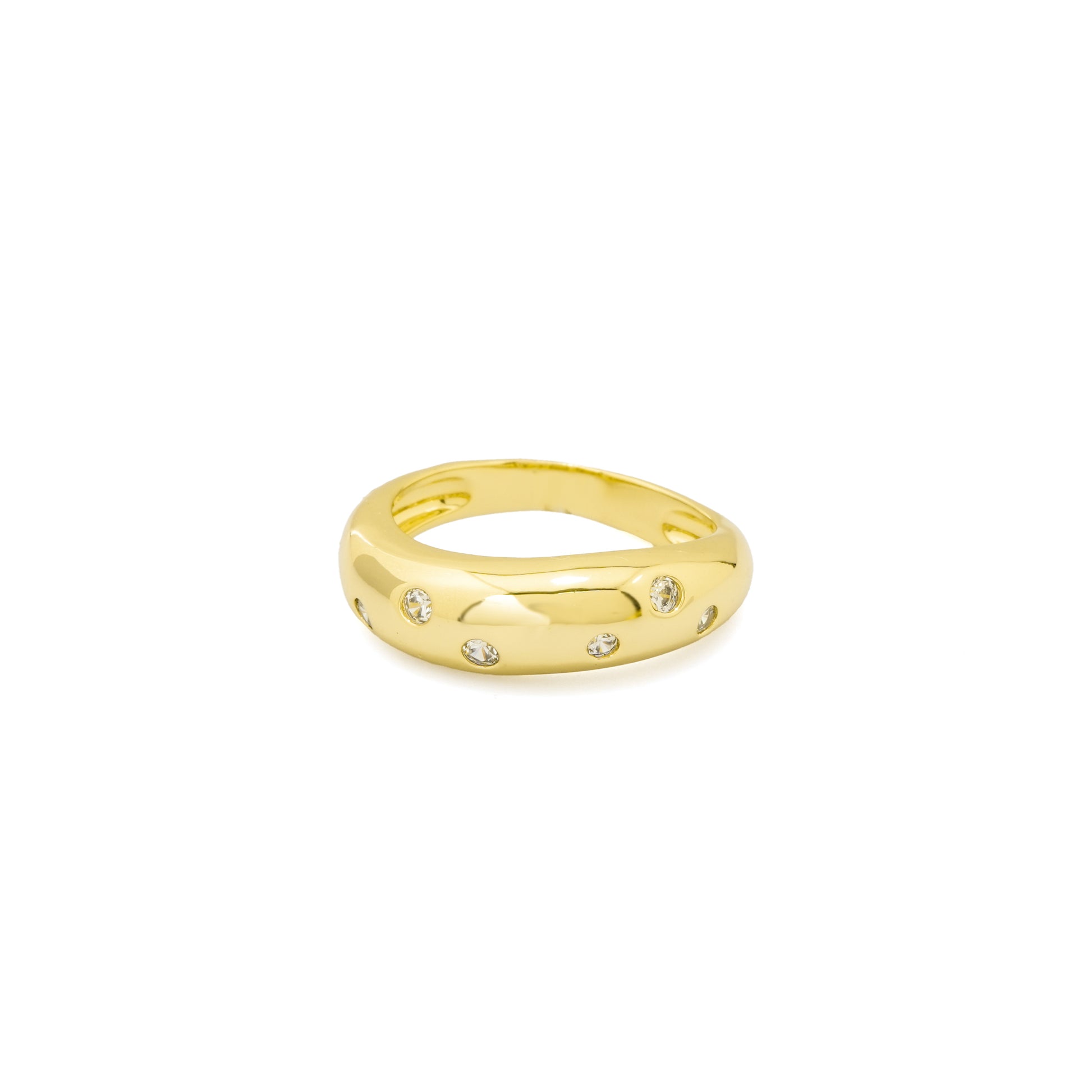 Gold Finish Band Ring for Women with Small Crystal Accents | Minimal Elegant Fashion Jewelry for Party, Wedding, Daily Wear