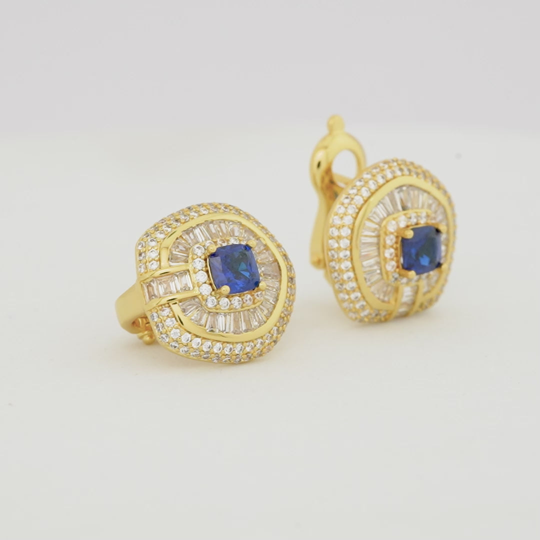 Crafted in a rich gold framework, these earrings embody luxury and refinement, making them the perfect choice for weddings, festive celebrations, and grand evening affairs. The combination of deep blue sapphires and sparkling diamonds creates an unforgettable statement piece that captures elegance and grandeur.