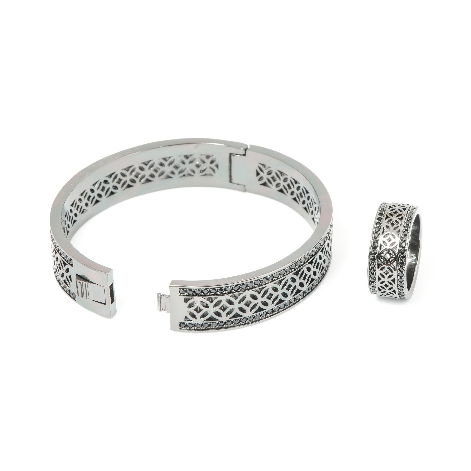 ● Elegant silver bracelet and ring set with intricate cutwork patterns