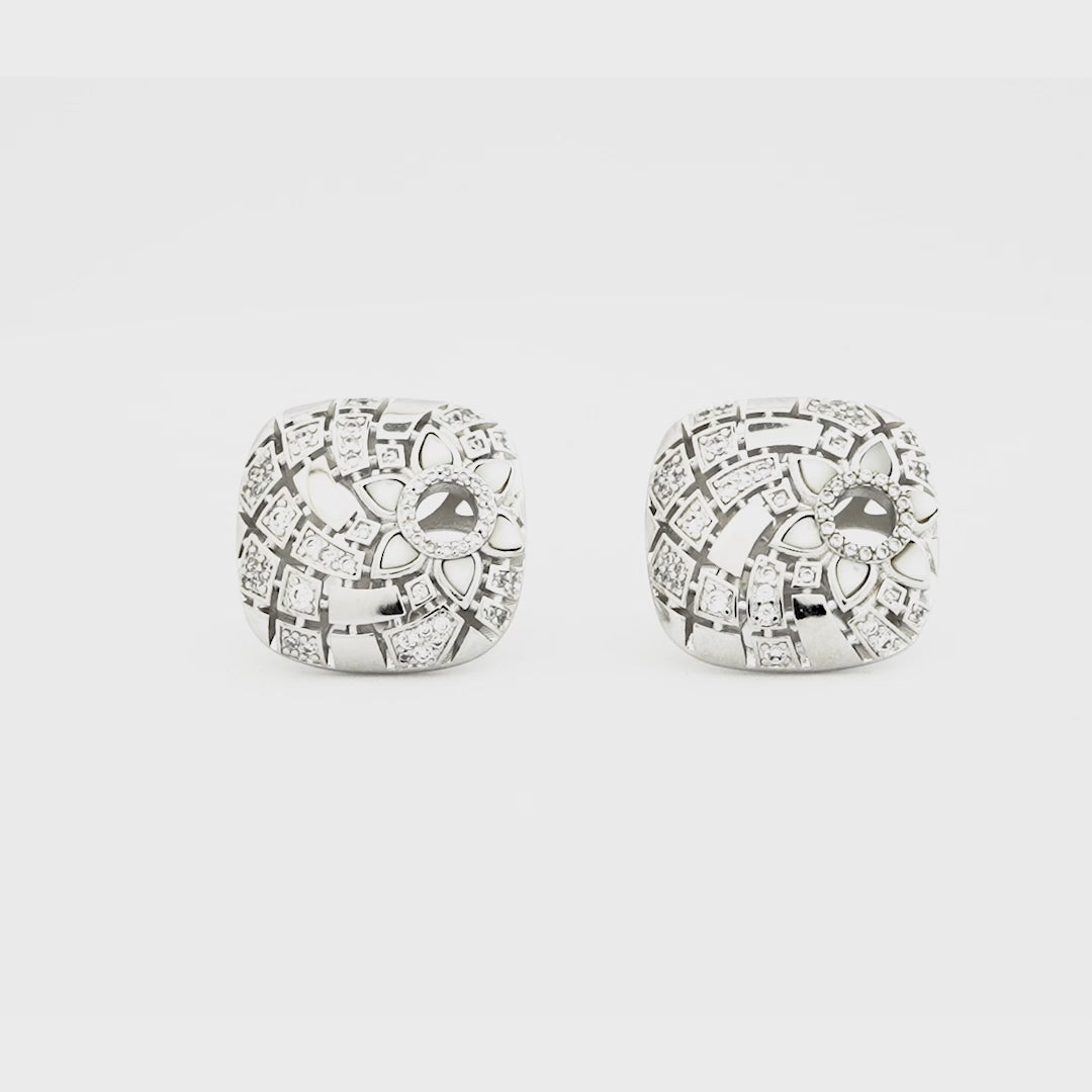 Timeless Silver-Plated Cushion Stud Earrings with Floral Diamond Accents and Intricate Geometric Detailing | Elegant Jewelry for Weddings, Parties, and Everyday Luxury