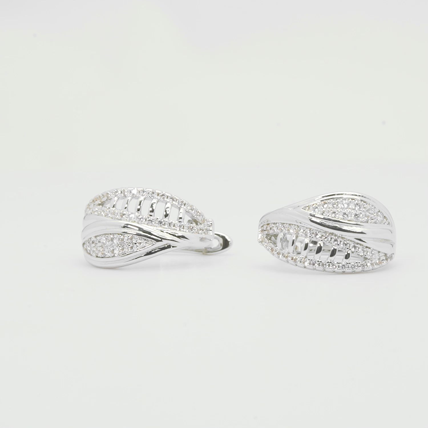 Design: Silver Pave Leaf Huggies