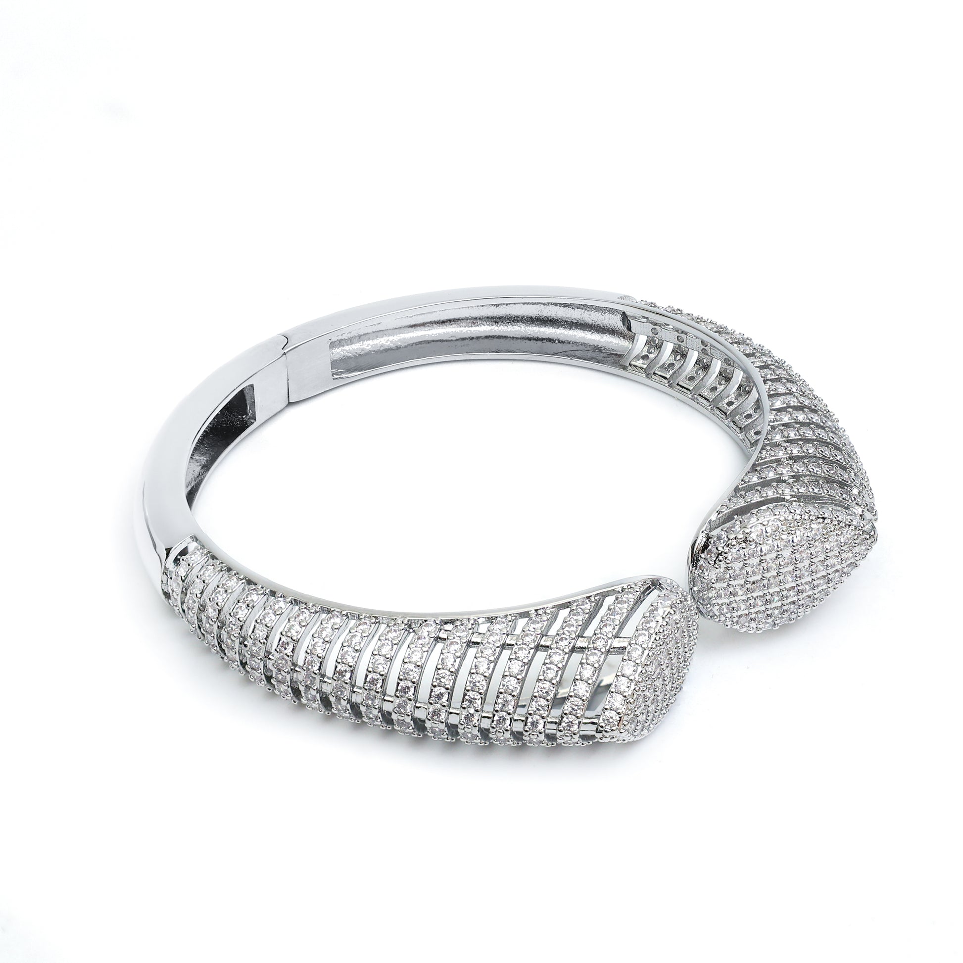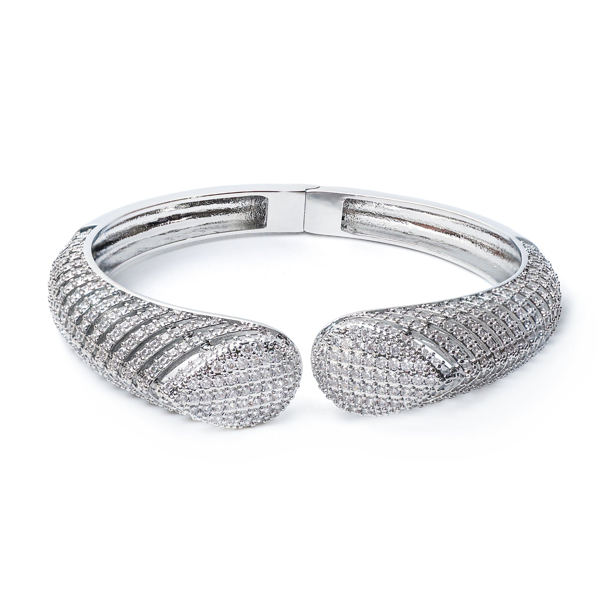 Silver Designer Cuff Bracelet for Women | Sparkling Stone Studded Statement Jewelry | Elegant Party & Wedding Wear