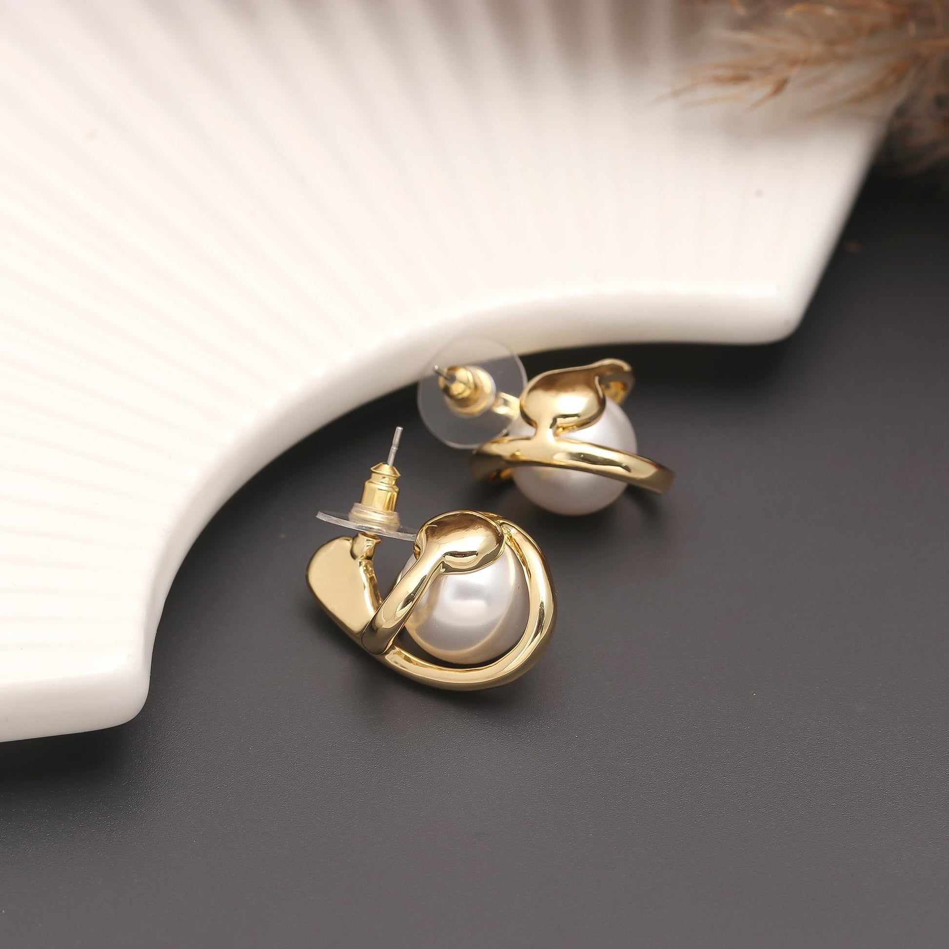 Classic meets contemporary in these gold-plated stud earrings, featuring luminous white pearls encased in polished crisscross bars. The elegant design highlights the pearl’s natural beauty while adding a touch of modern artistry with the geometric cross structure. Perfect for weddings, festive occasions, or daily elegance, these earrings bring a refined balance of tradition and style.