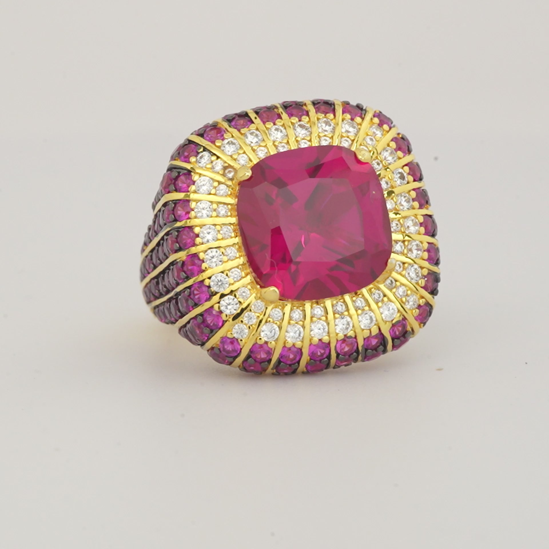 Crafted from high-quality alloy with a glossy gold plated finish, this ring is both durable and lightweight, ensuring long-lasting shine and comfort. The vibrant ruby red color makes it stand out, making it perfect for both special occasions and everyday glamour.