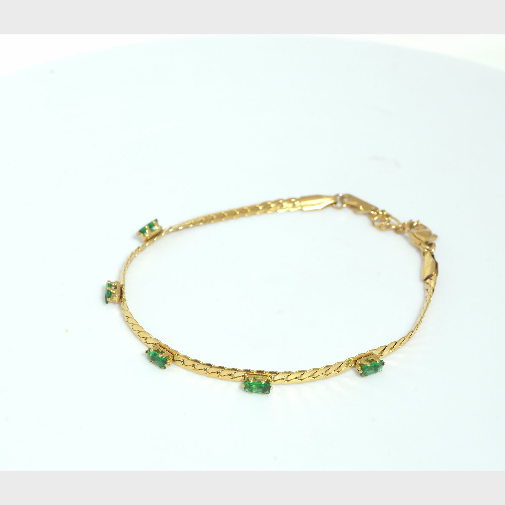 Add refined sparkle to your everyday style with the Mahttab Timeless Charm Emerald Chain Bracelet, a beautifully crafted piece that blends classic elegance with modern simplicity. Designed on a sleek gold plated chain, this bracelet features a series of vivid emerald green stones set at graceful intervals, creating a subtle yet captivating pop of color.