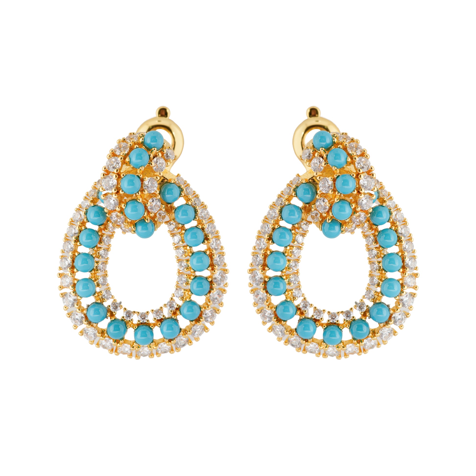 The unique blend of soothing turquoise tones with the brilliance of white stones makes these earrings stand out as a perfect fusion of tradition and modern artistry. Whether you’re attending a wedding, festive gathering, or an elegant evening event, these earrings ensure you make a statement with refined charm and vibrant elegance.