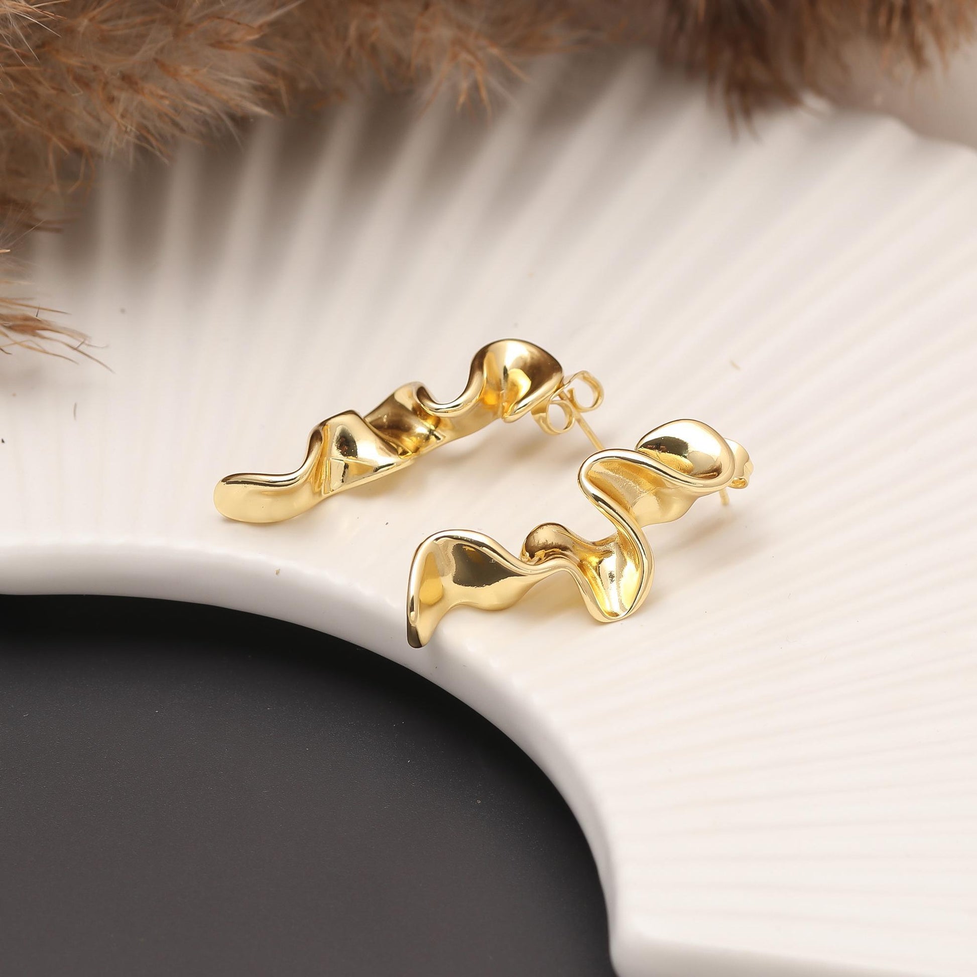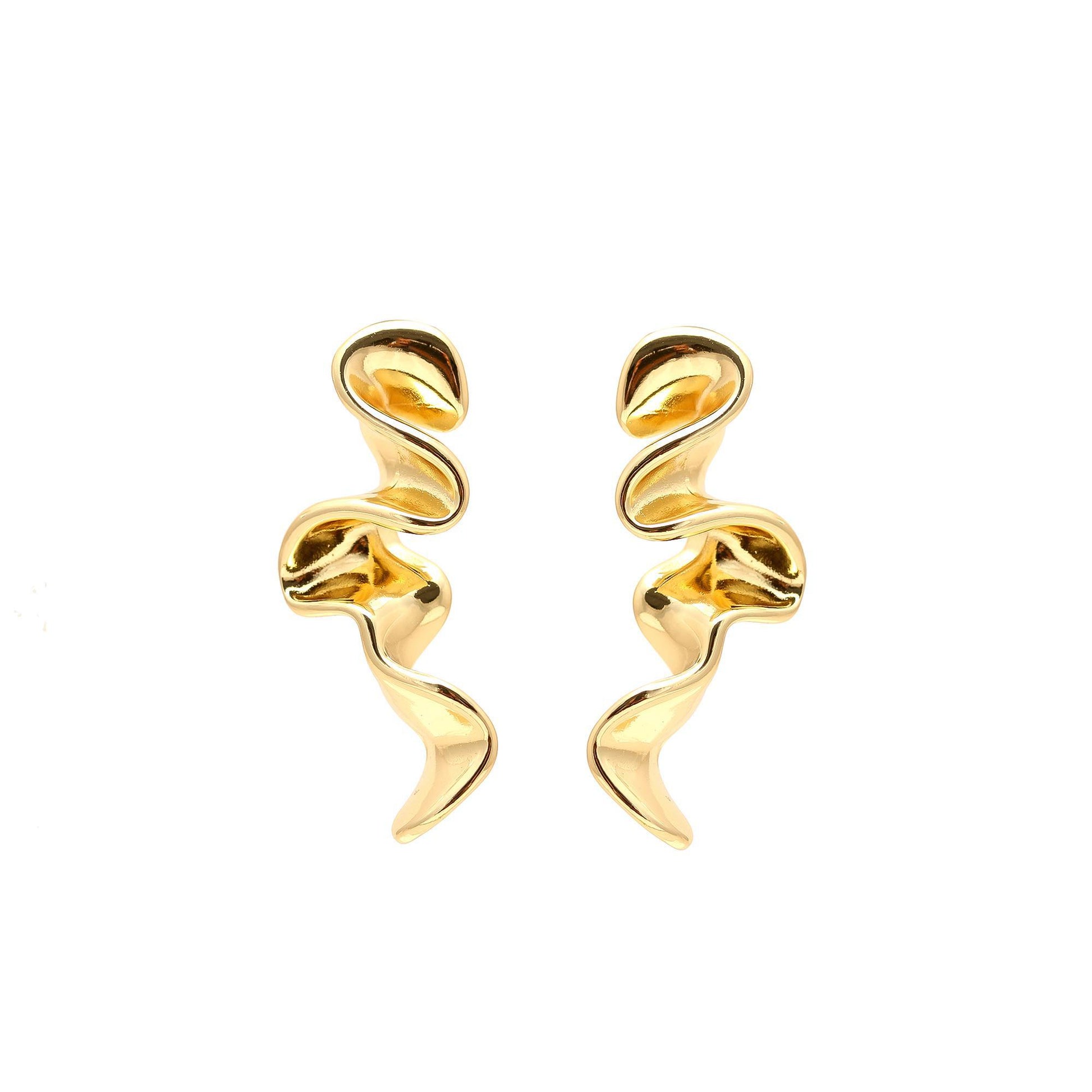 Gold-Plated Fluid Wave Dangling Earrings with Organic Curves and Polished Finish for Bold Contemporary Statement Style