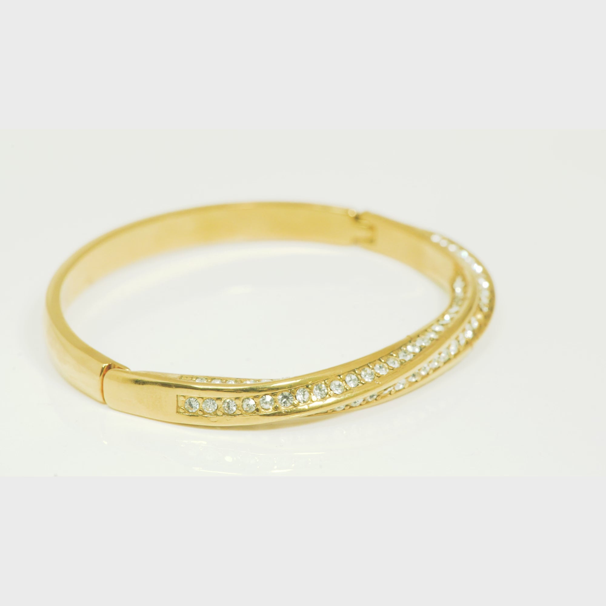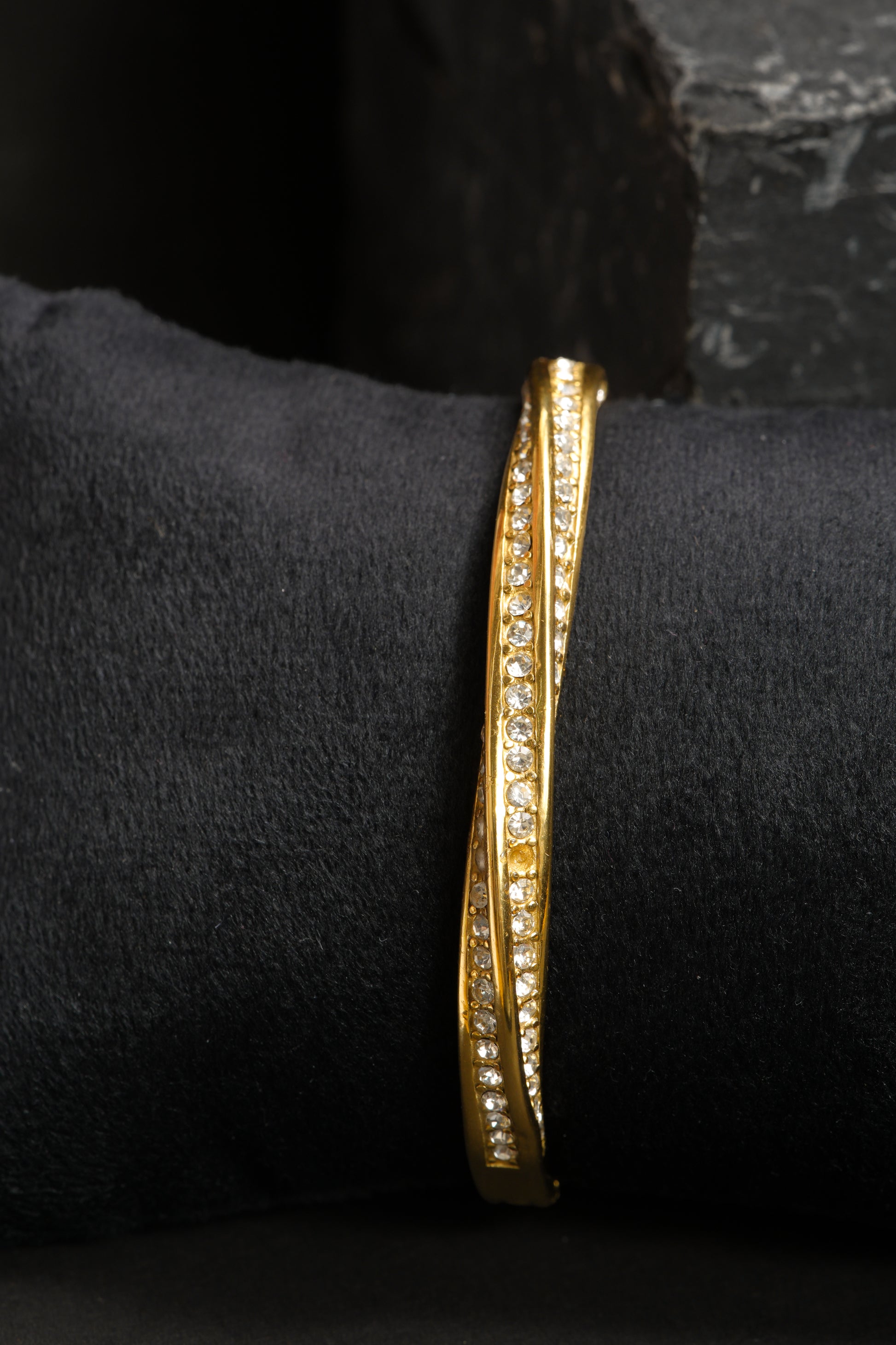 Illuminate your style with the breathtaking Twisted Comet Pave Bracelet, a show-stopping gold-tone bangle designed to deliver maximum brilliance. This high-impact bracelet features a striking twisted, helical silhouette that wraps gracefully around the wrist, giving the illusion of movement and fluidity even when still.