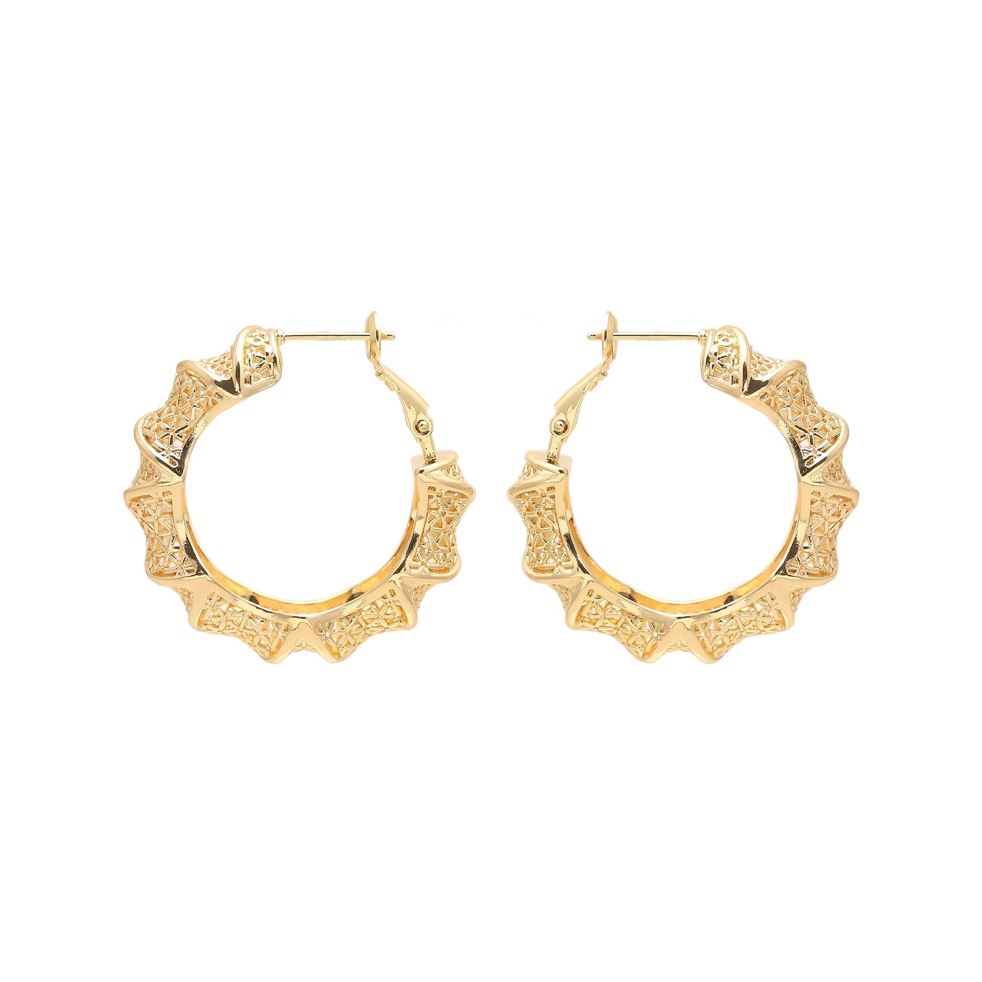 Gold-Plated Scalloped Hoop Earrings with Intricate Textured Detailing and Bold Geometric Edges for Timeless Festive Elegance